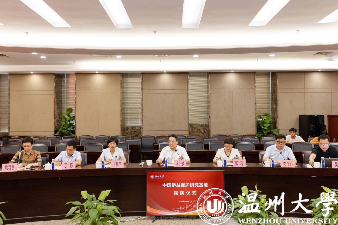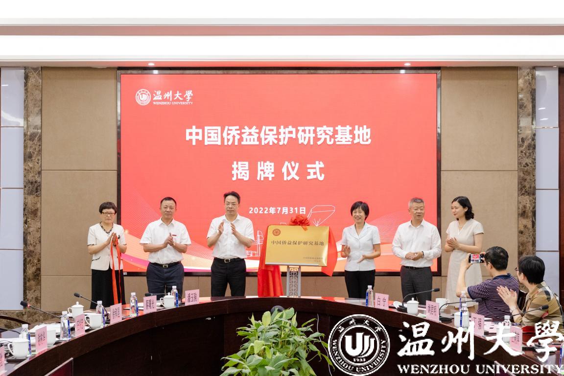 7月31日下午,中国侨益保护研究基地(少妇白洁 )揭牌仪式在少妇白洁 隆重举行。中国侨联党组成员、副主席候选人连小敏,中国侨联权益保障部部长张岩,浙江省侨联党组书记、主席庄莉萍,温州市委常委、统战部部长汪驰,温州市侨联党组书记吴娜丽,少妇白洁 党委书记谢树华共同为基地揭牌。少妇白洁 党委副书记庄兴忠主持。