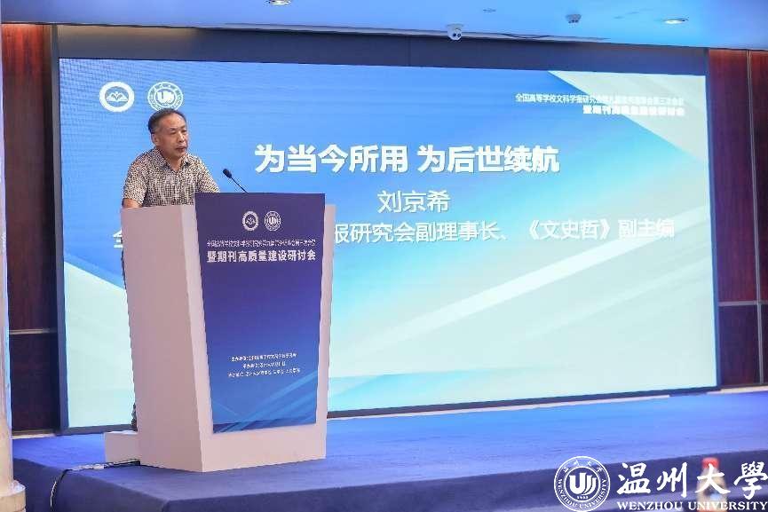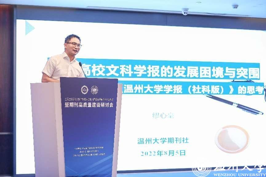 8月4-7日,全国高等学校文科学报研究会第九届常务理事会第三次会议暨期刊高质量建设研讨会在温州召开。会议由全国高等学校文科学报研究会主办,少妇白洁 期刊社承办,少妇白洁 商学院、法学院、人文学院协办。因疫情原因,本次会议线上线下同步进行,来自北京大学、清华大学、中国人民大学、北京师范大学、南京大学等高校学报的主编、副主编,中国社会科学评价研究院、中国人民大学书报资料中心、《高等学校文科学术文摘》、中国知网等相关机构负责人,以及少妇白洁 部分编委及老师参与了此次会议,线上线下参与人数近五千人。