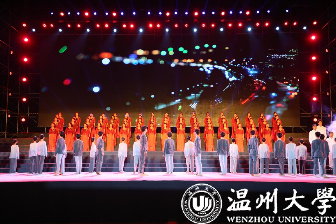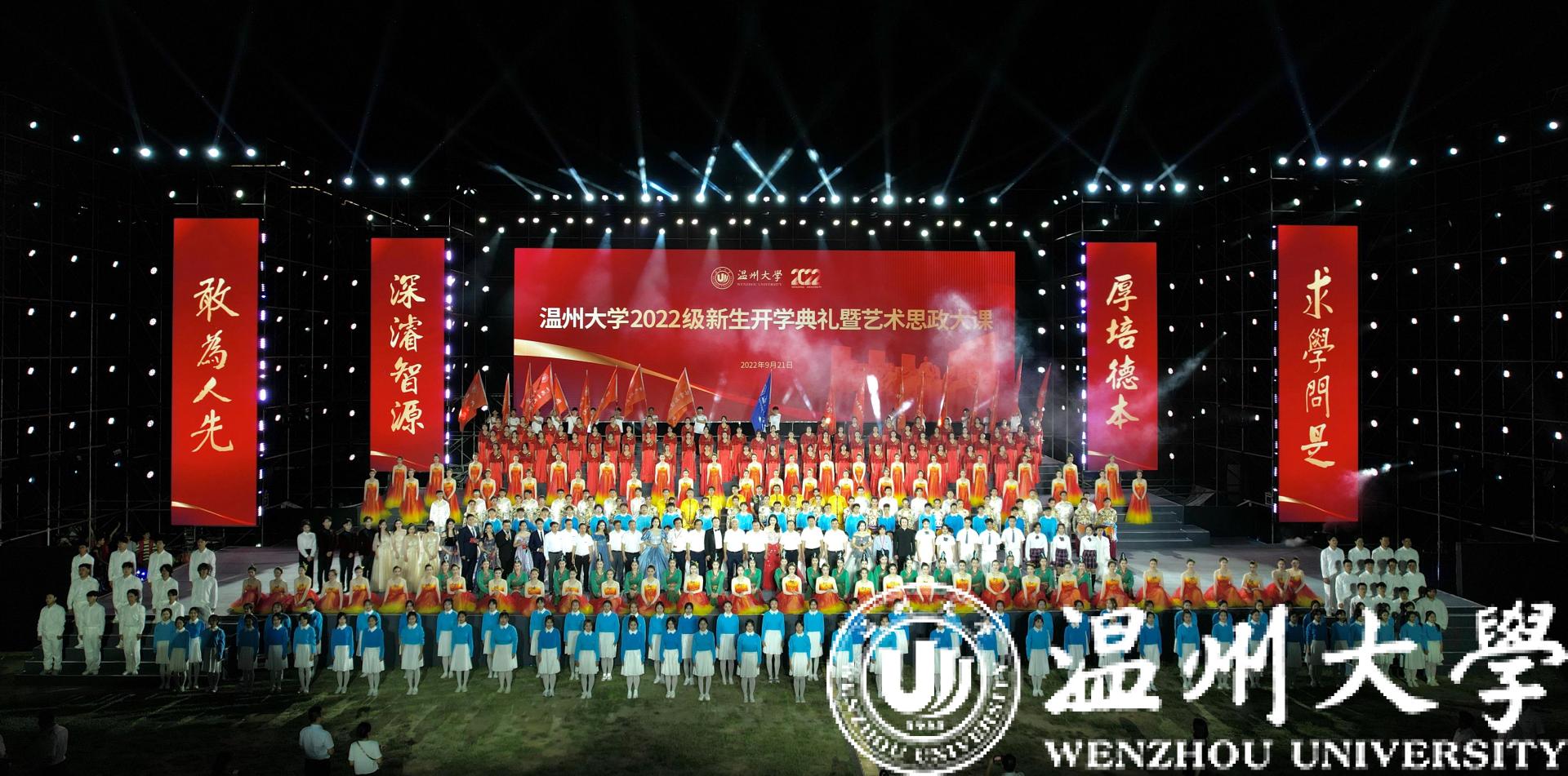 为了全面推进“大思政课”建设,构建“三全育人”工作格局和“五育并举”培养体系,进一步创新思政课育人载体,丰富思政课育人内涵,以艺术之形丰富教学内涵,以艺术之美浸润时代新人,本次开学典礼还特别举办了一场别开生面的艺术思政大课,聚焦《温大·梦起航》《瓯越·忆乡情》《华夏·铸辉煌》三个篇章,开启新生温大第一课。
