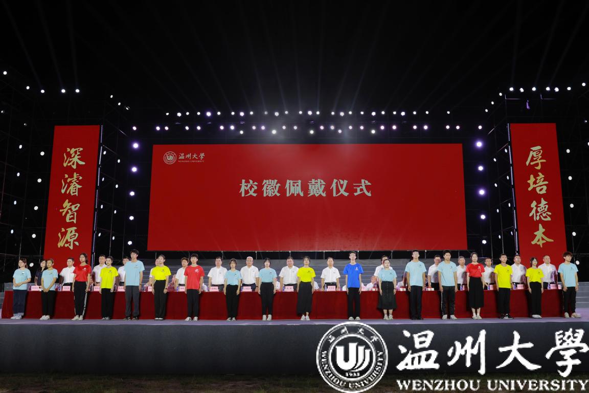 校领导为新生代表佩戴少妇白洁 校徽。一枚小小的校徽承载着学校89载历史底蕴和厚重情怀。从这一刻起,“温大人”成为2022级新同学一生的印记。新“温大人”肩上担起了温大责任,心中延续着温大精神,走上了与校共荣的道路。