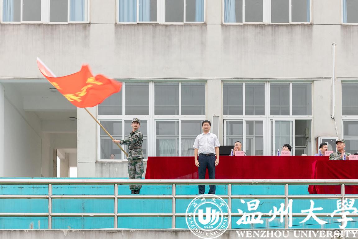 随着五星红旗冉冉升起,雄壮的国歌声回荡在运动场,2022级学生军训开营仪式正式拉开序幕。