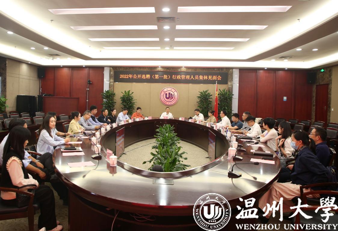 人事处负责人绍本次公开选聘工作情况,宣读2022年公开选聘(第一批)录用行政管理人员名单及岗位安排。行政管理人员依次进行了自我介绍,并充分表达了对未来职业的憧憬。各用人单位负责人为新入职行政管理人员亲切佩戴校徽,并赠送《干在实处,勇立潮头——习近平浙江足迹》重要读本,号召大家努力从领袖的奋斗历程中汲取力量,在新时代伟大实践中更好担当作为。