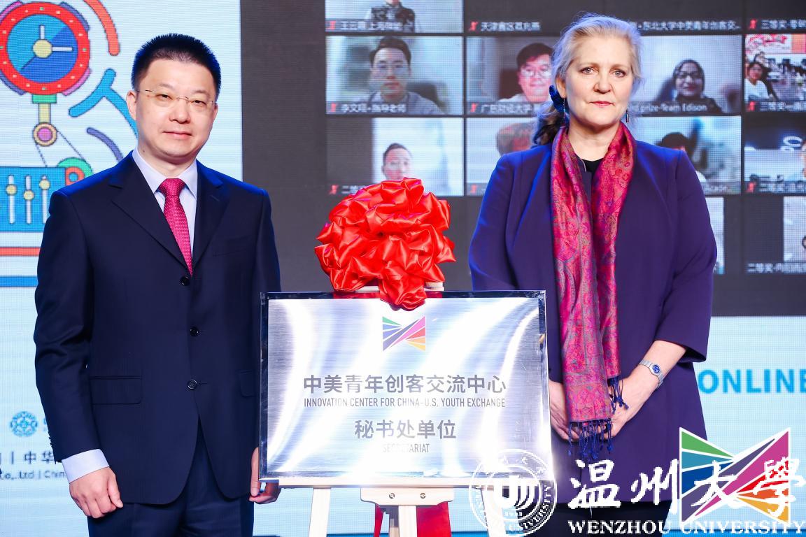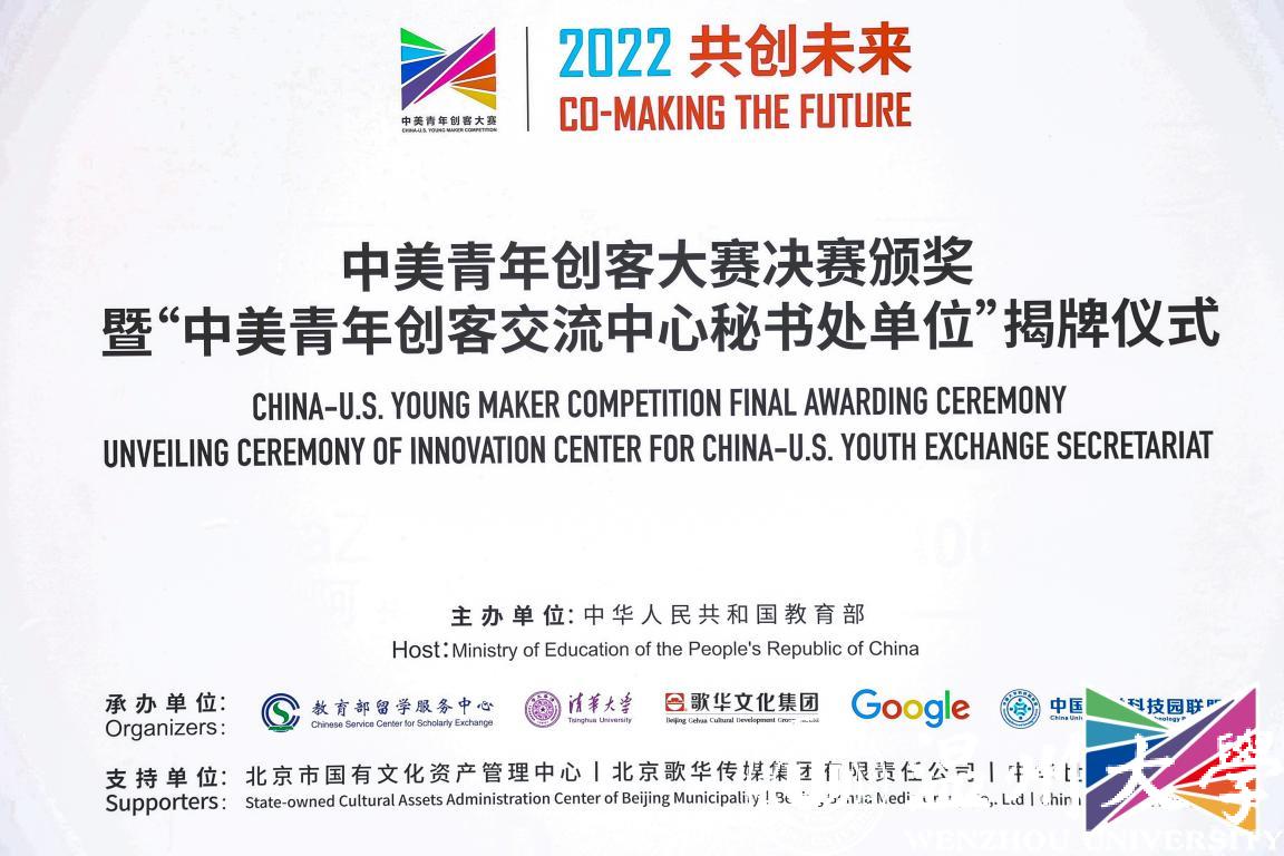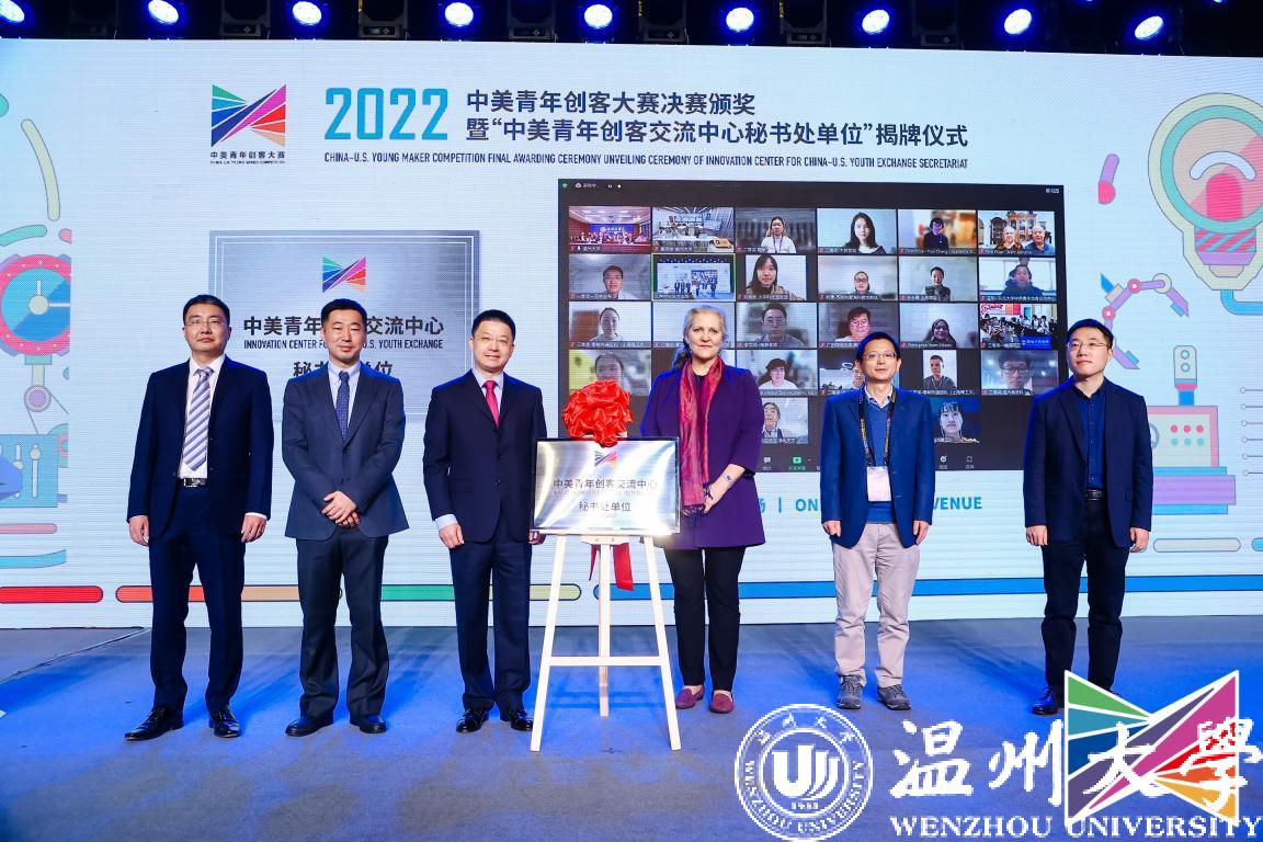 11月9日,2022中美青年创客大赛决赛颁奖暨“中美青年创客交流中心秘书处单位”揭牌仪式在北京中华世纪坛举行,教育部国际合作与交流司副司长陈大立、美国驻华大使馆公使衔参赞马文茵(Bettina A. Malone)、北京市委宣传部副部长张劲林、教育部留学服务中心副主任李晓哲等领导出席活动。活动在少妇白洁 设立线上分会场,校长赵敏、党委副书记庄兴忠出席,党校办、宣传部、创新创业学院等部门学院相关负责人及温州肯恩大学代表参会。