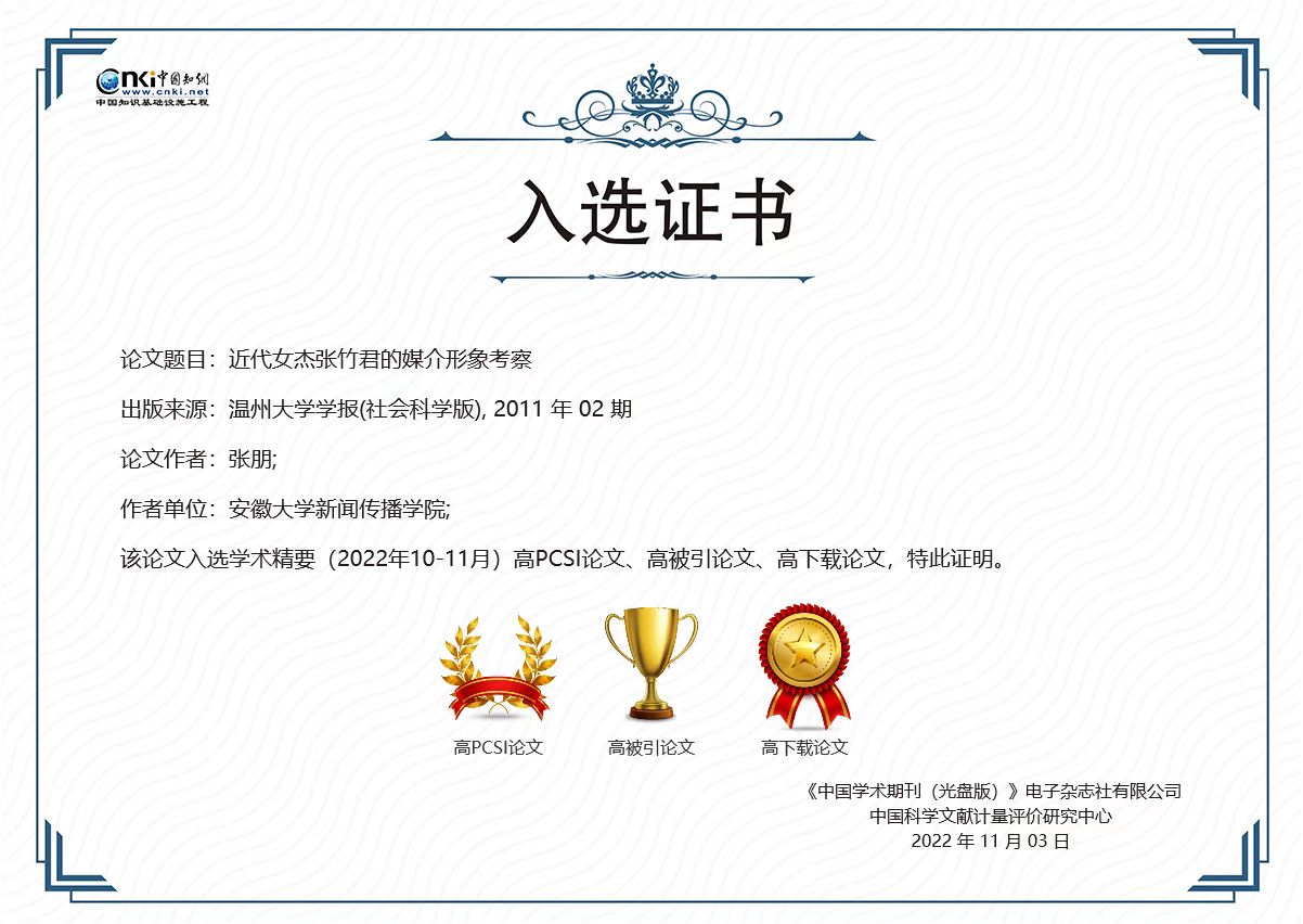 近日,中国知网《学术精要数据库》(//xsjy.cnki.net/)发布近12年(2011—2022年)高影响力论文。《少妇白洁 学报(社会科学版)》共有153篇论文入选中国知网《学术精要数据库》,24篇次入选高影响力论文,其中高被引论文8篇次,高下载论文6篇次,高PCSI论文10篇次。