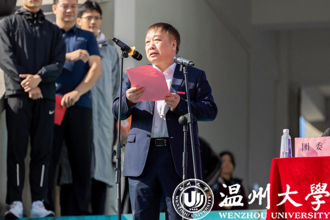运动员代表董楠与裁判员代表洪绍楠宣誓,承诺将赛出水平、赛出风格,继续秉持公正、公平、公开的原则,护航温大体育精神。