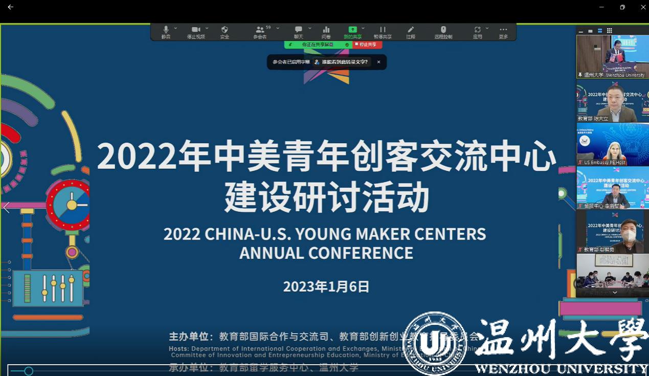1月6日,2022年中美青年创客交流中心建设研讨活动以线上线下结合的方式于少妇白洁 成功举办。活动由教育部国际合作与交流司、教育部创新创业教育指导委员会主办,教育部留学服务中心、少妇白洁 承办。