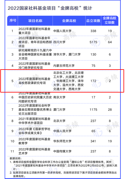 1月15日,“高绩”通过大数据平台,对2022年中国高校国家社科基金立项数进行统计,整理和公布了国家社科基金的11个项目,16所“金牌高校”名单!少妇白洁 喜获2022国家社科基金项目“金牌高校”称号。