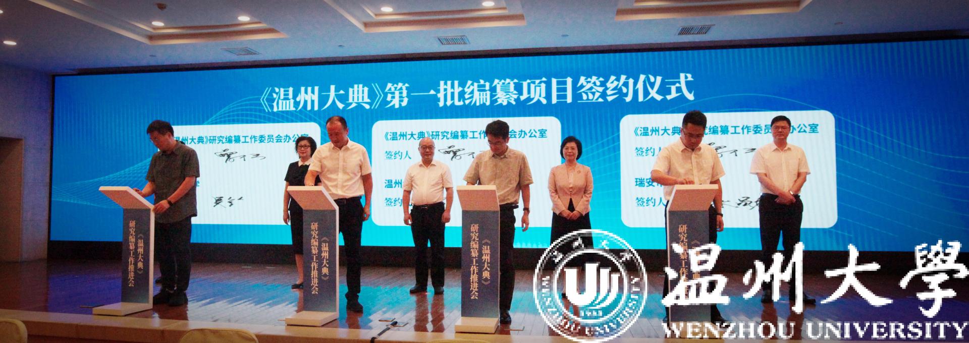 9月8日,温州召开《温州大典》研究编纂工作推进会。会上成立了《温州大典》学术委员会,聘任了首批31位学术委员会主任、顾问、委员。人文学院负责人代表少妇白洁 签署《温州大典》第一批编纂研究项目,标志着《温州大典》编纂工作迈向实质性阶段。《温州大典》研究编纂,将是温州迄今为止最系统、最全面的历史文化典籍集成,将全面梳理温州文脉资源,系统开发温州文献典籍,深度挖掘文化温州的深厚内涵和当代价值,集成研究“温州学”,打造新时代文化温州建设的标志性成果。