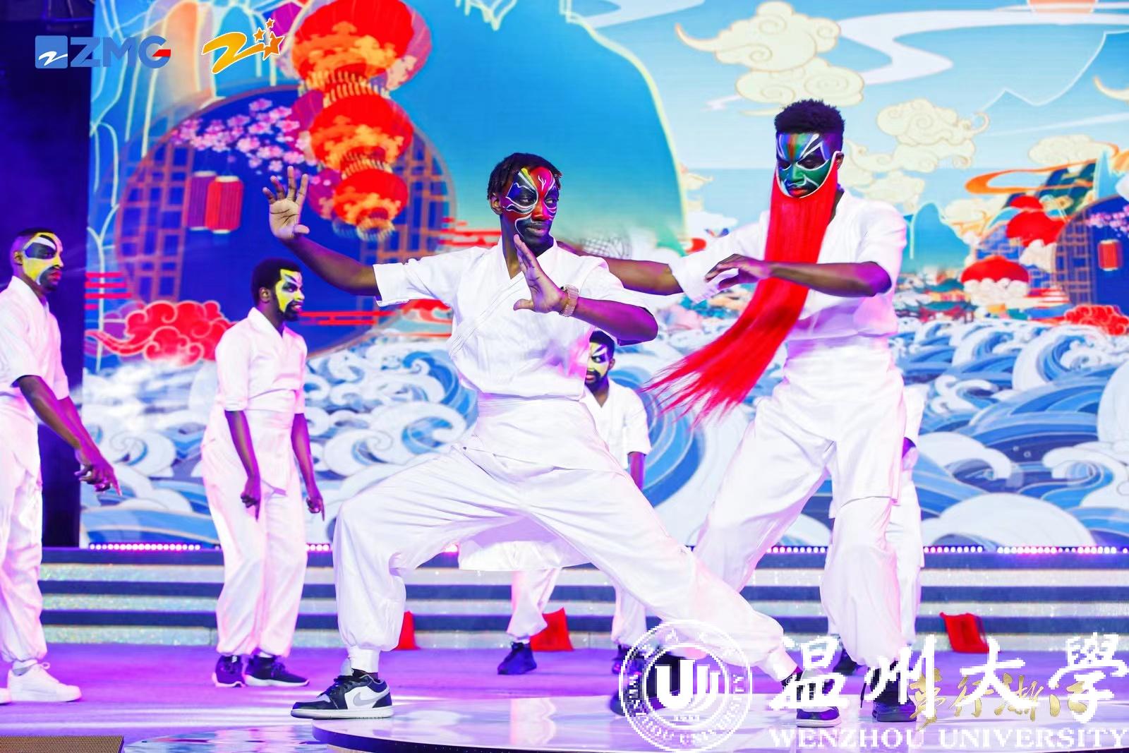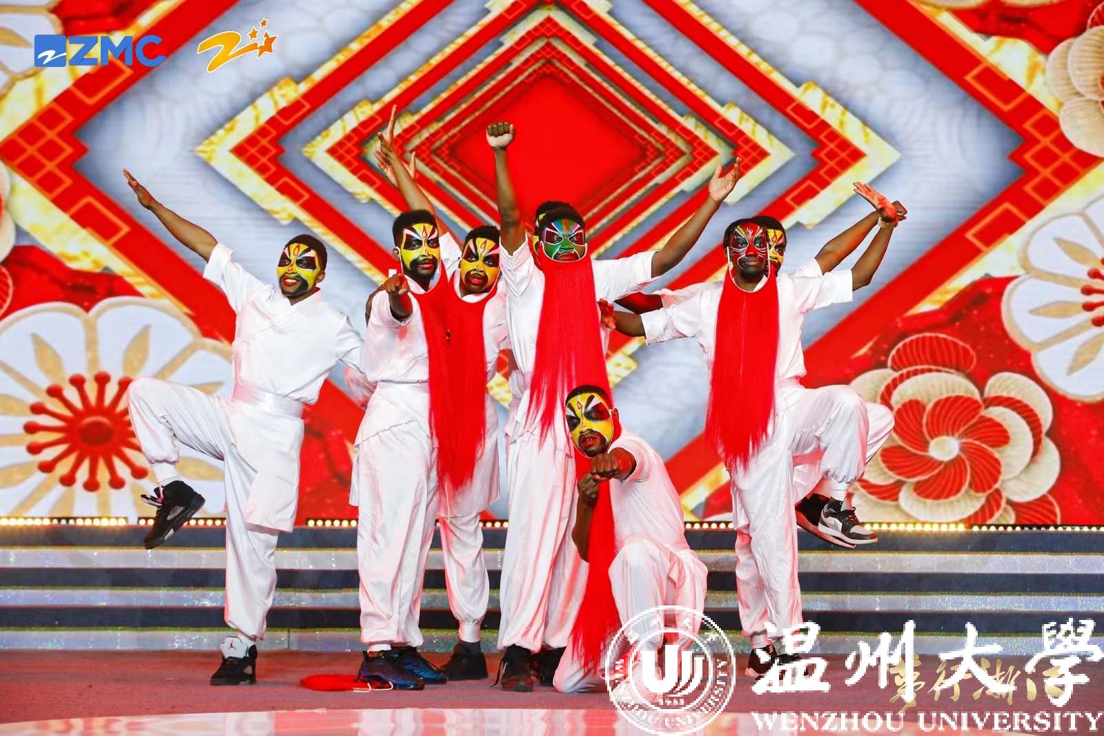 来自赞比亚、津巴布韦与尼日利亚等国家的8名外国留学生代表少妇白洁 ,经过了三个月的刻苦训练,倾情演绎了京韵街舞《京舞门》,诠释了现代与传统,中国文化与外国文化碰撞、交流、融合产生的独特魅力。表达了留学生们积极做“民间使者”,推进中外文化交流的责任、担当,得到评委们和观众们的一致好评。