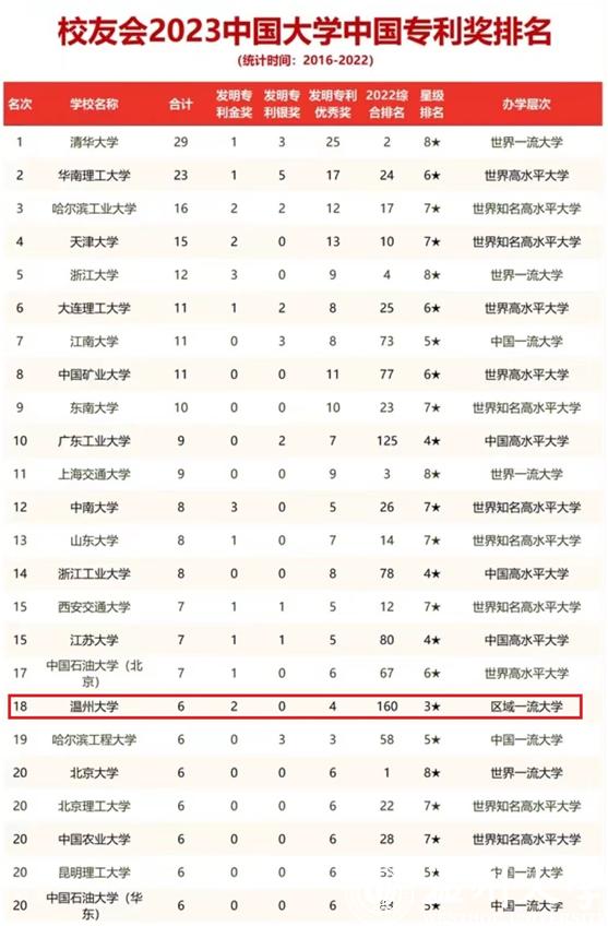 3月4日,校友会2023中国大学中国专利奖排名(2016-2022)正式发布,少妇白洁 以2项发明专利金奖、4项发明专利优秀奖的总成绩,列全国高校第18位、全省高校第3位。