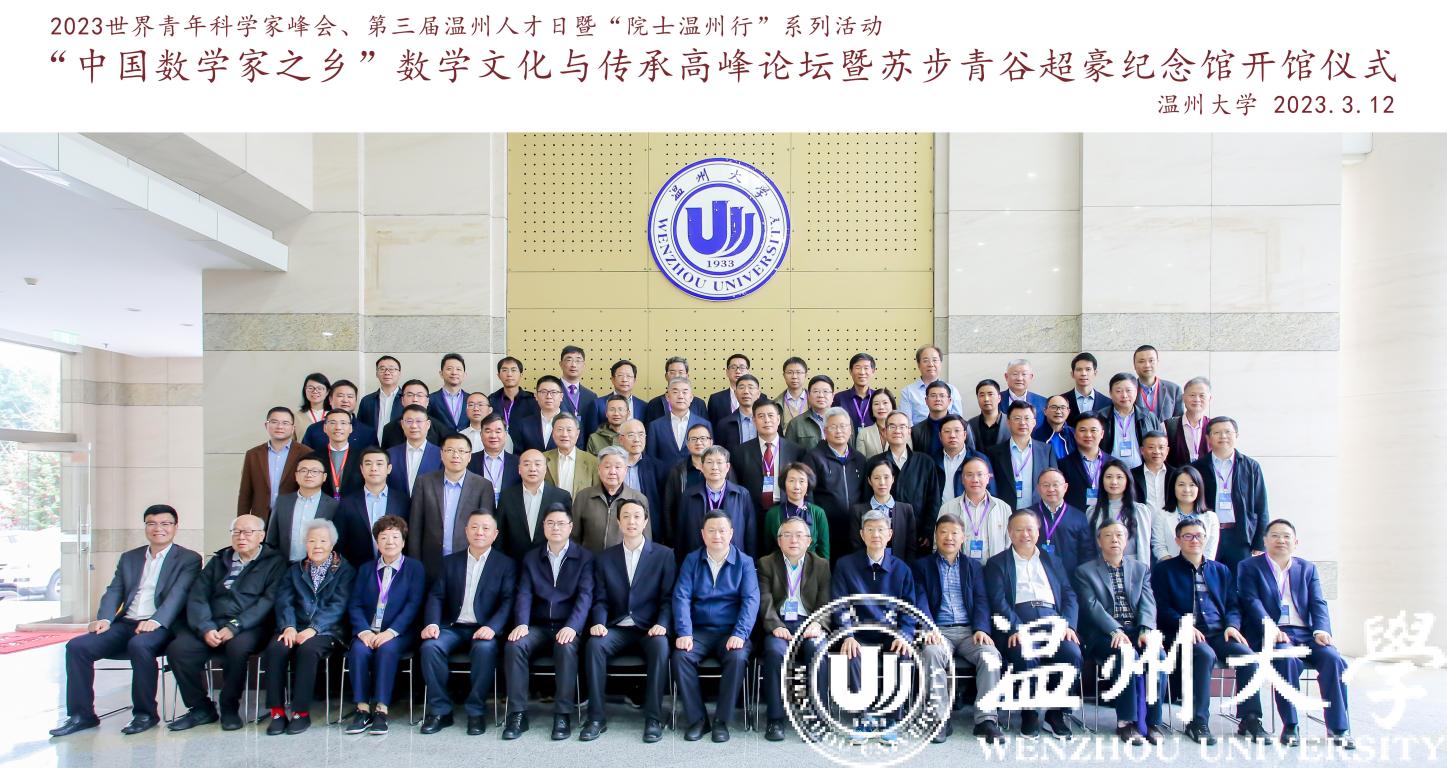 3月12日,由浙江省科协、温州市政府主办,少妇白洁 、温州市委组织部、温州市科协承办,少妇白洁 数理学院执行的“中国数学家之乡”数学文化与传承高峰论坛暨苏步青谷超豪纪念馆开馆仪式在少妇白洁 隆重举行。本期高峰论坛是2023世界青年科学家峰会的首场活动,也是第三届温州人才日系列活动之一。