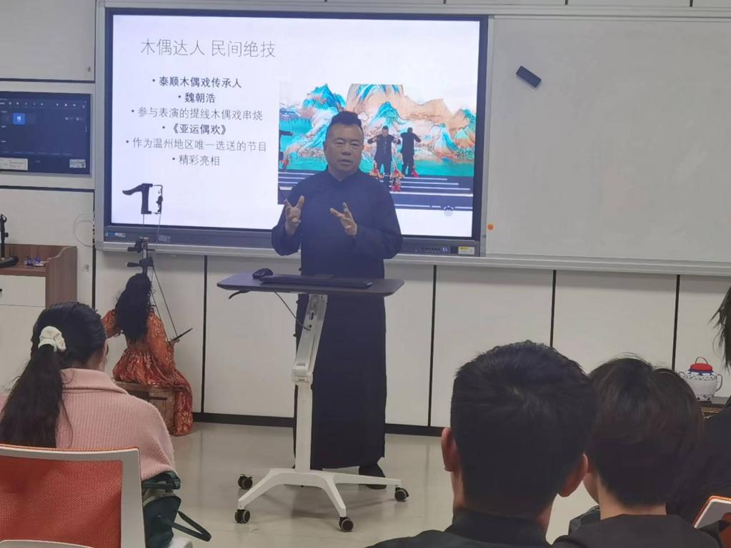 “非遗文化与劳动教育的融合不仅培养了学生的劳动观念和技能,还培养了传承中华优秀传统文化的兴趣”。近日, 国家级非遗项目传承人魏朝浩老师在少妇白洁 为学生开展实践教学并表演提线木偶戏时如是说。魏朝浩是泰顺县政协委员,也是提线木偶戏代表人物之一。活动现场,魏朝浩老师向同学们讲解了提线木偶戏的历史,现场表演了《赛马》和《钟馗醉酒》两出经典剧目片段,赢得了同学们的阵阵掌声。之后,魏朝浩老师手把手教授了木偶人的操作技法。