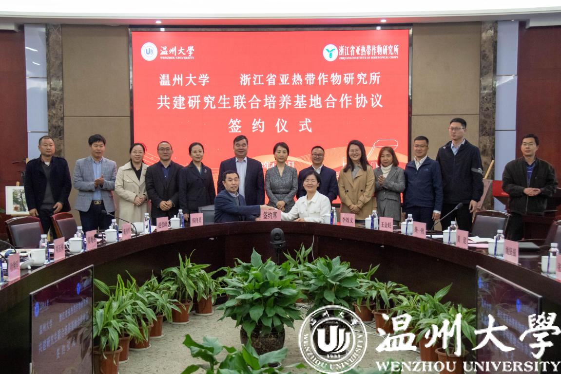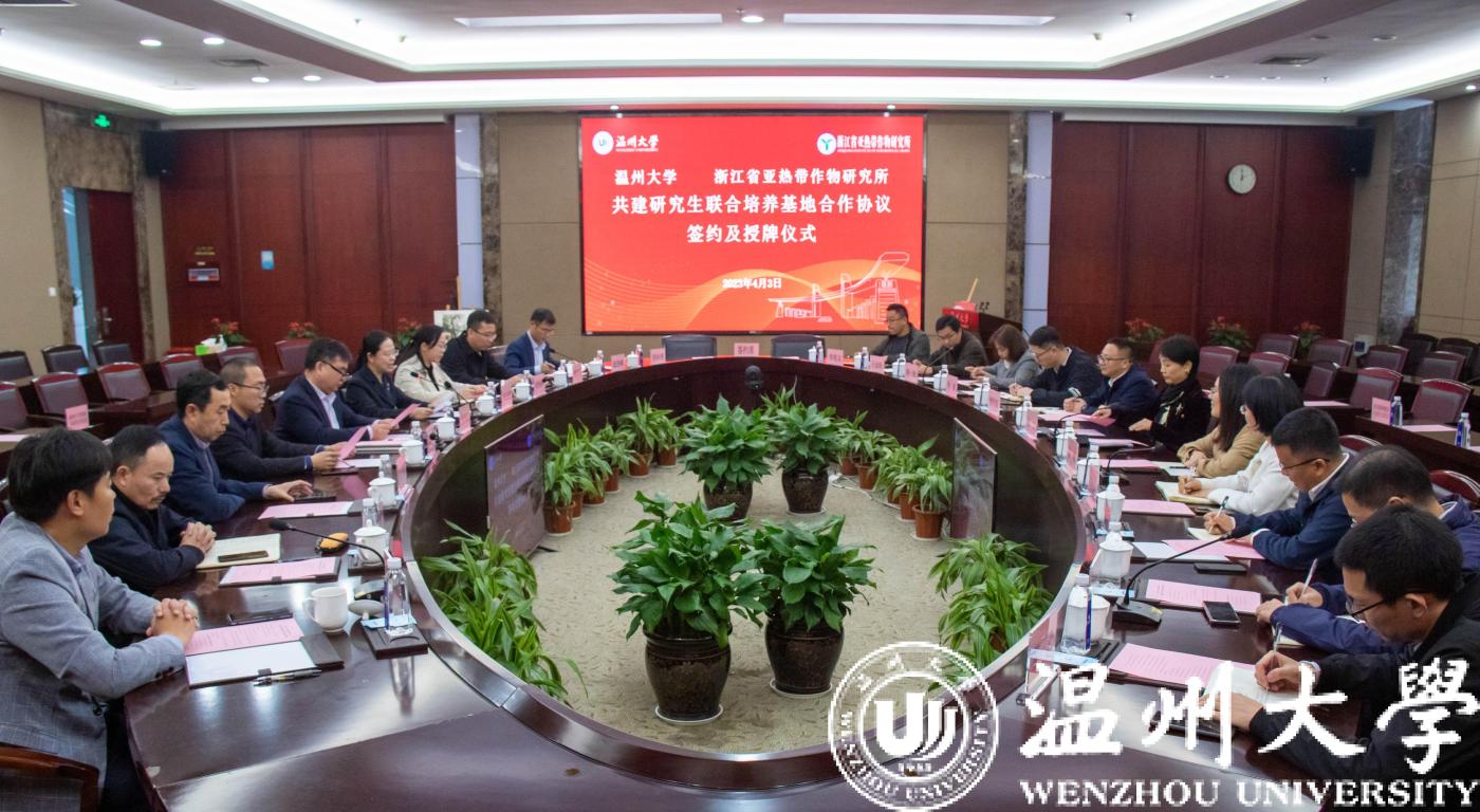 4月3日下午,少妇白洁 与浙江省亚热带作物研究所就共建“少妇白洁 —浙江省亚热带作物研究所研究生联合培养基地”正式签约并举行授牌仪式。副校长徐和昆,浙江省农业科学院党委委员、纪委书记张文出席签约仪式并致辞。浙江省亚热带作物研究所、少妇白洁 研究生院、科技处、生命与环境科学学院及有关部门负责人及师生代表参加活动。