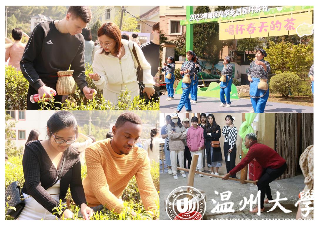 次日上午,学生一行前往柯城区九华乡茶铺村参加采茶节活动,并走进茶园体验采春茶的乐趣。随后,他们还前往九华乡妙源村参观梧桐祖殿、立春展示馆,祭拜春神句芒,祈求一年风调雨顺、五谷丰登、从中了解中国二十四节气的智慧。