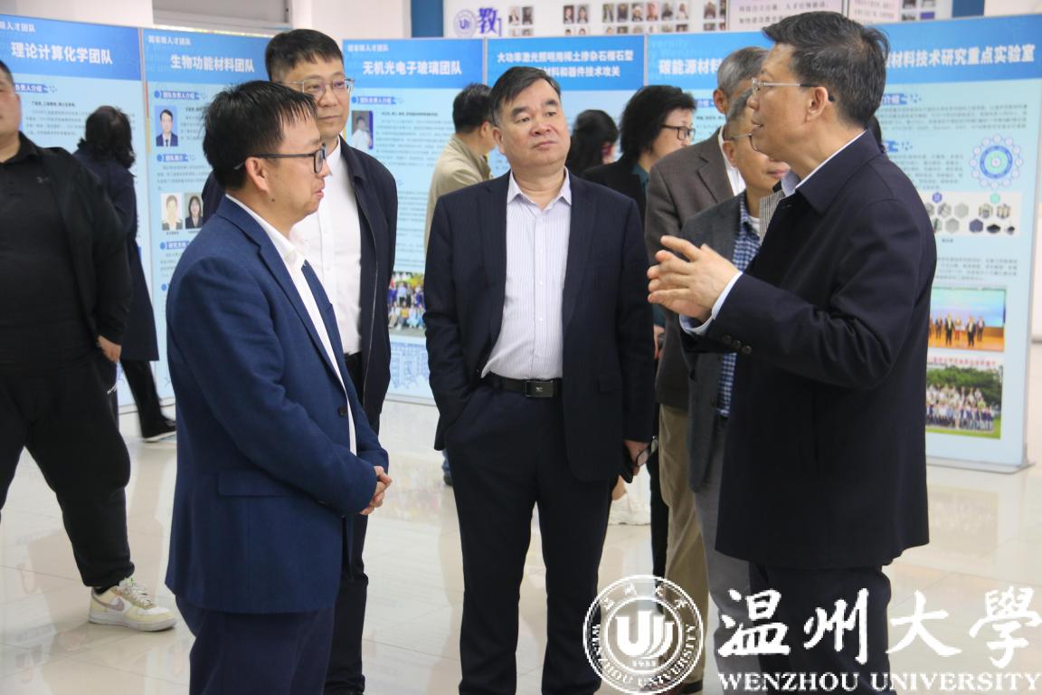 陈根芳一行还来到化材学院,听取了学院学科建设、博士点建设、师资队伍建设、人才培养、专业平台、科学研究、服务地方、党建、实验室建设等情况汇报。先后参观化材学院院史展示厅、研究团队展示厅、样板党支部、化学科普基地、扶摇书舍,深入了解化材学院的发展史与近现况,并对学院发展、博士点建设等提出了指导性的建设意见与建议。