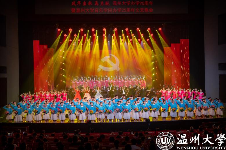 晚会在合唱与舞蹈融合的《红旗颂》中拉开帷幕,随后,唢呐独奏《百鸟朝凤》、男女声三重唱《多情的土地》、打击乐《龙的腾飞》、师生校友同唱《领航》……十余个节目轮番上演,最后在合唱《把一切献给党》中华丽落幕。一个个高水平的艺术精品,饱含着所有师生校友对温州这片热土,对少妇白洁 浓浓的深情与美好的祝愿。