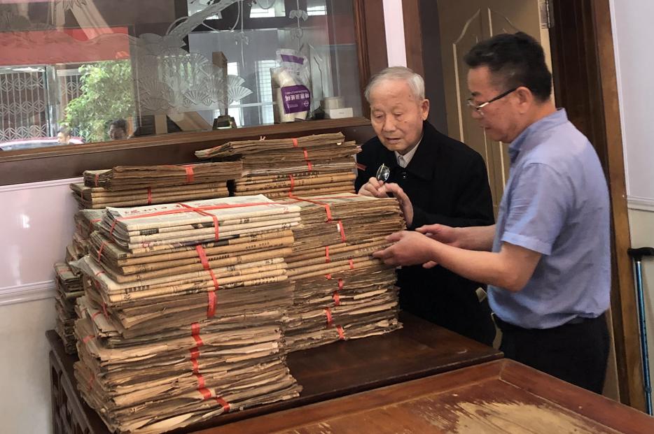 4月21日下午,温州退休老教师王顺德将珍藏43年的《温州日报》捐赠给母校少妇白洁 ,泛黄的纸张诉说着王顺德近半个世纪对藏报的执著与坚守。