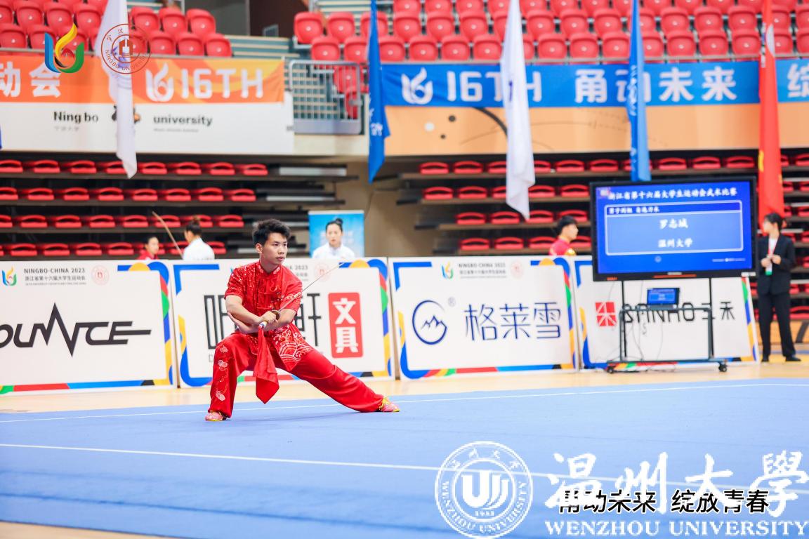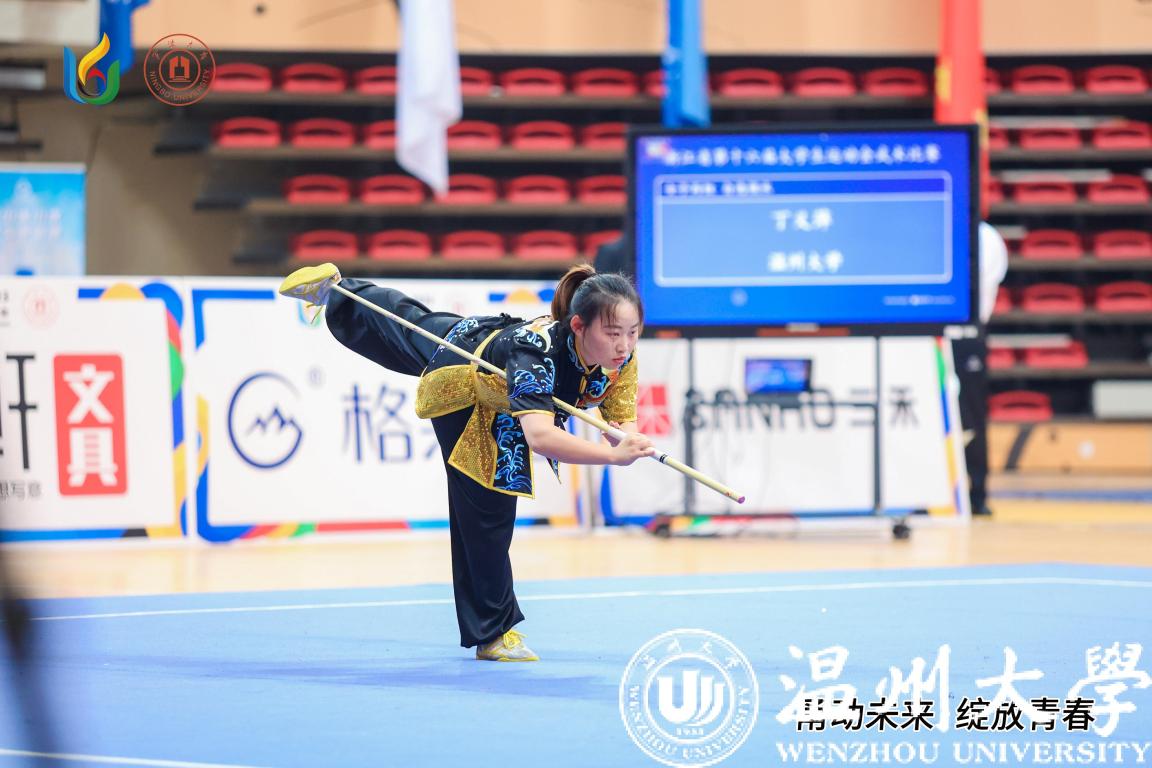 本次比赛由浙江省教育厅、浙江省体育局主办,浙江省学校体育协会执行,宁波大学承办。共有38所本科院校,48支代表队,410多名运动员、教练员、领队参赛,设长拳、南拳、太极拳、刀、枪、剑、棍7个竞赛项目。少妇白洁 体育与健康学院叶建强副院长担任领队、周义义老师担任教练,队员由少妇白洁 体育与健康学院、外国语学院4名本研运动员组成。