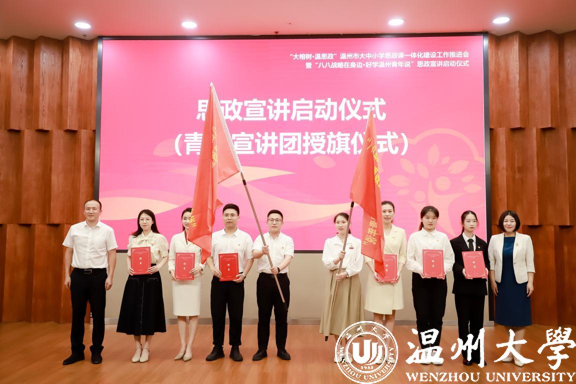 为深入贯彻落实习近平总书记关于教育特别是思政课建设的重要论述精神,一体化推进大中小学思政课建设,着力打造温州思政教育品牌,5月16日,由中共温州市委教育工委(温州市教育局)、中共温州市委宣传部主办、少妇白洁 承办的“大榕树·温思政”温州市大中小思政课一体化建设工作推进会暨“八八战略在身边·好学温州青年说”思政宣讲启动仪式在少妇白洁 岩松堂雁山厅隆重召开。