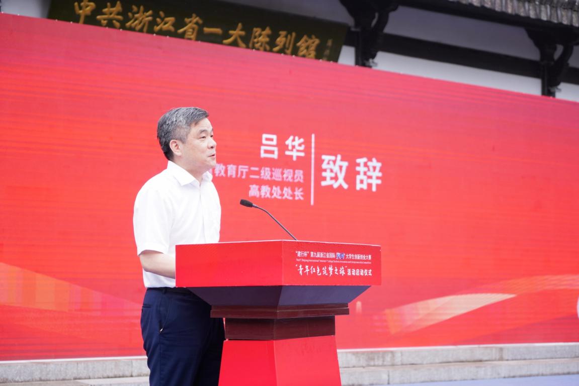 吕华致辞。他指出,经过8年实践探索,红旅活动已成为一堂融党史教育、国情思政、创新创业、服务乡村振兴为一体的思政金课、实践大课。他寄语广大青年学子,锻造“坚定不移跟党走”的赤诚之心,始终铸牢理想信念的根基、擦亮奋斗青春的底色,始终心系“国家事”、肩扛“国家责”;砥砺“梦想从学习开始”的进取之心,勇立时代潮头,矢志创新创造,争做双创先锋;涵养“用脚步丈量大地”的实干之心,怀抱梦想又脚踏实地,敢想敢为又善作善成,甘于在基层一线奉献自我、善于在平凡岗位创造非凡,让青春在全面建设中国式现代化国家的火热实践中绽放绚丽之花。