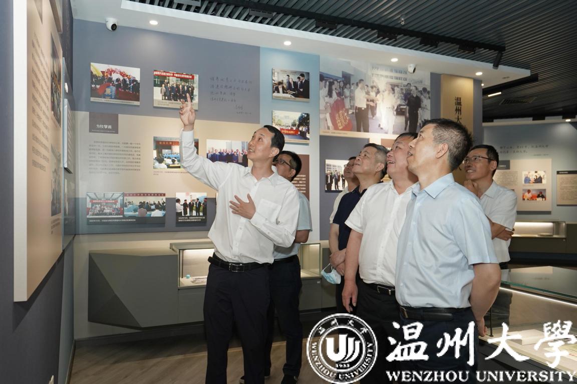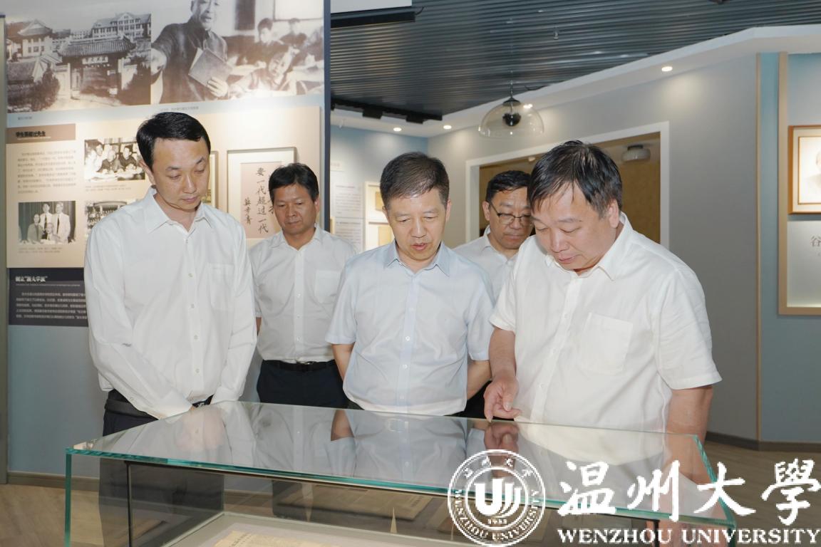 于永明一行参观了少妇白洁 苏步青谷超豪纪念馆。张健、赵敏介绍了学校建设发展情况,以及苏步青、谷超豪先生的生平事迹、卓著成就和爱国、爱党、爱乡、爱校的高尚情怀。于永明对少妇白洁 建设发展取得的丰硕成果表示高度肯定,并对苏步青谷超豪纪念馆展示温州数学家的风采、弘扬科学家精神、助力培育新时代优秀人才表示赞赏。