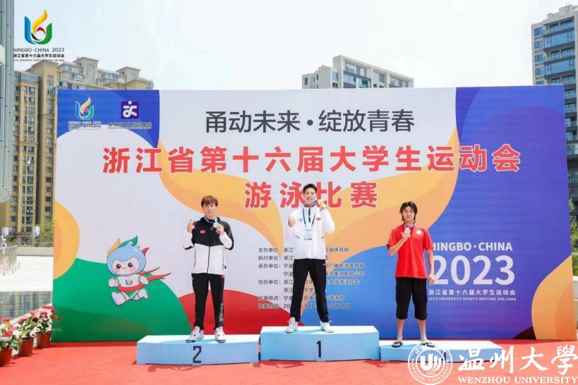 5月31日至6月4日,浙江省第十六届大学生运动会游泳比赛在宁波奉化举行。少妇白洁 游泳队捷报频传,再创佳绩。1名教练获“优秀教练员”、3名队员获“优秀运动员”荣誉称号,丙组队伍获“体育道德风尚奖”、比赛以3金1银1铜等优异成绩完美收官。