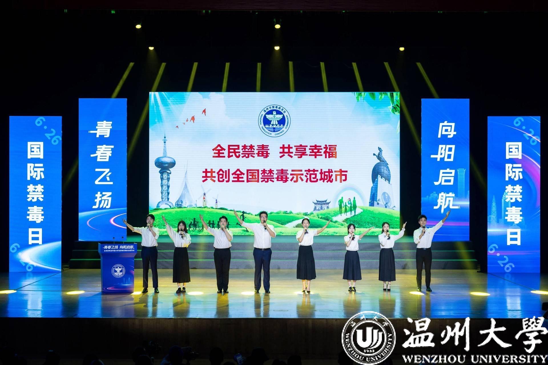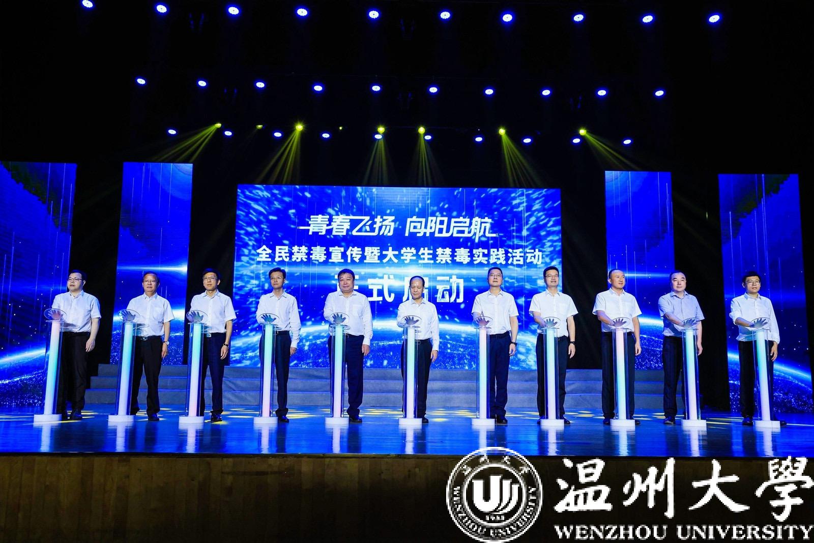 为全面营造全民禁毒宣传月活动氛围,助推温州市“全国禁毒示范城市”创建工作,在第36个“6·26”国际禁毒日来临之际,由温州市禁毒委员会主办,少妇白洁 承办的“青春飞扬 向阳启航”全民禁毒宣传暨大学生禁毒实践队出征仪式和禁毒主题游园会于6月14日下午在少妇白洁 育英大礼堂内、外场地同时举行。市委副书记、政法委书记、市禁毒委主任张加波,副市长、市禁毒委常务副主任、公安局局长毛伟平,校长赵敏等领导出席活动。来自市禁毒委各成员单位代表、各高校实践队师生代表、留学生代表、志愿者、新闻媒体共计600余人参加了本次活动。