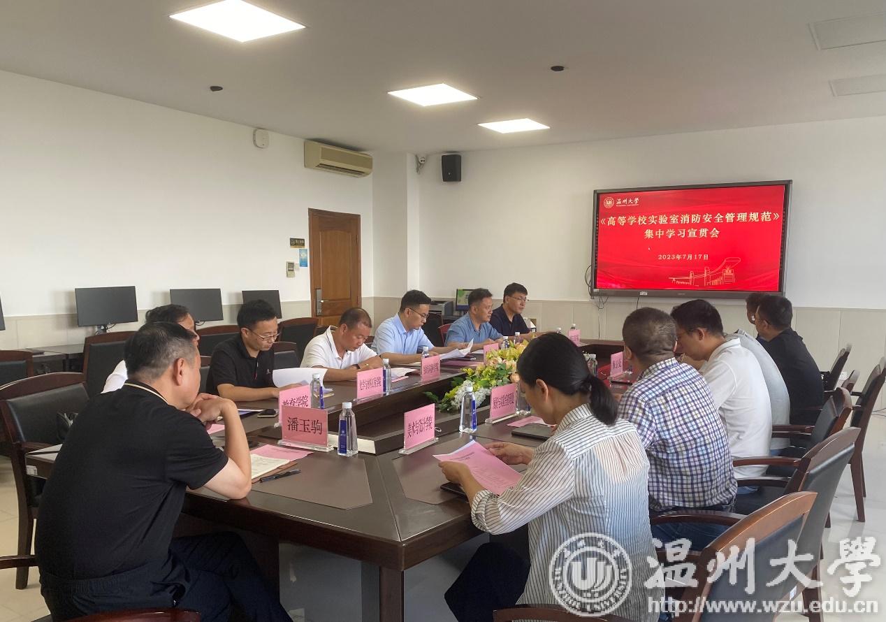 会上,温州市消防支队副大队长郑国前领学了《高等学校实验室消防安全管理规范》,重点解读了实验室消防安全管理的总体要求、消防安全责任、消防安全制度和管理、消防安全措施、灭火和应急疏散预案编制和演练、火灾事故处置与善后以及奖惩制度。