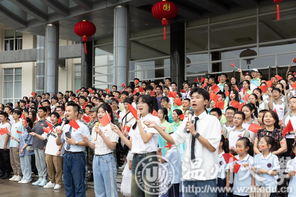 “同一片大海和天空,同迎着黎明和繁星,同样的向往和憧憬,同圆我们一个梦……”温大“小青荷”亚运志愿服务队、退役大学生、国旗护卫队的代表们共同唱响亚运会主题曲《同爱同在》,一起感受同心同创、同力共赢、同向未来的力量。