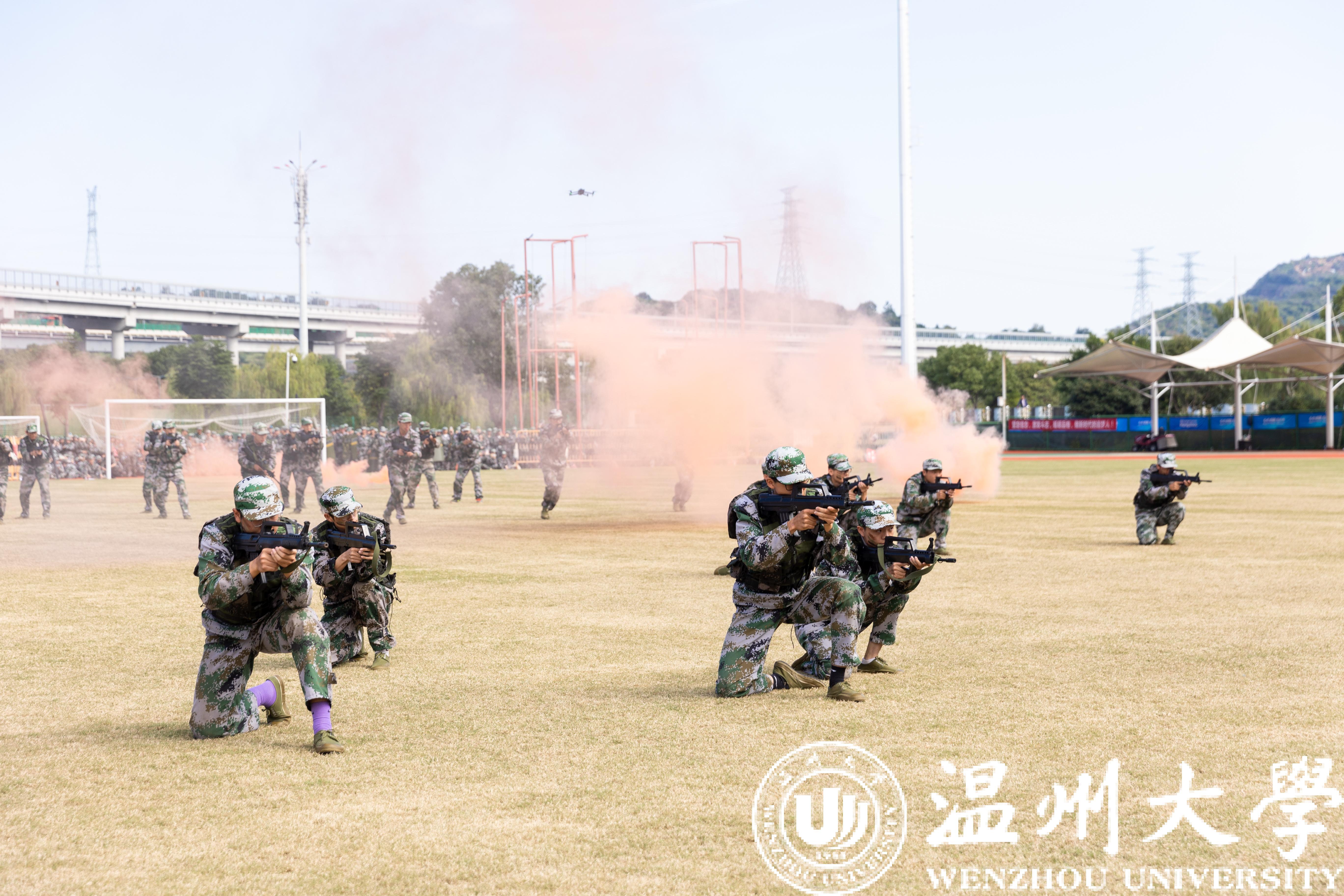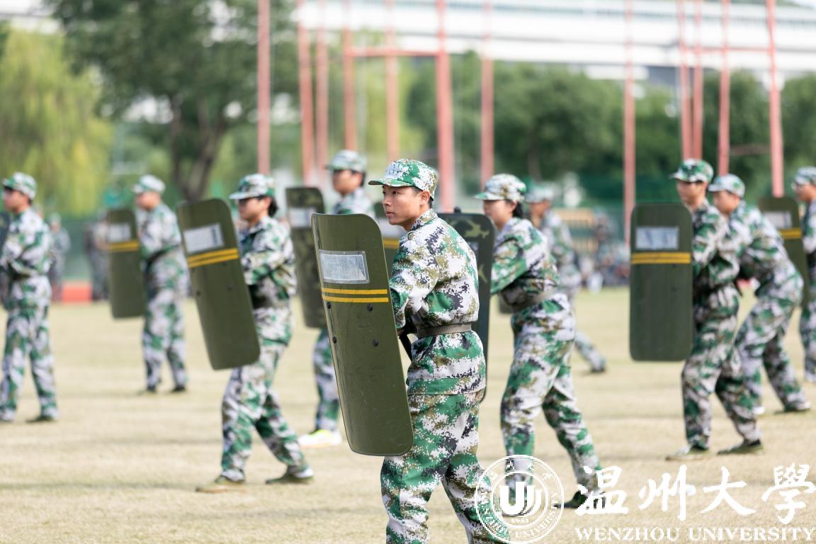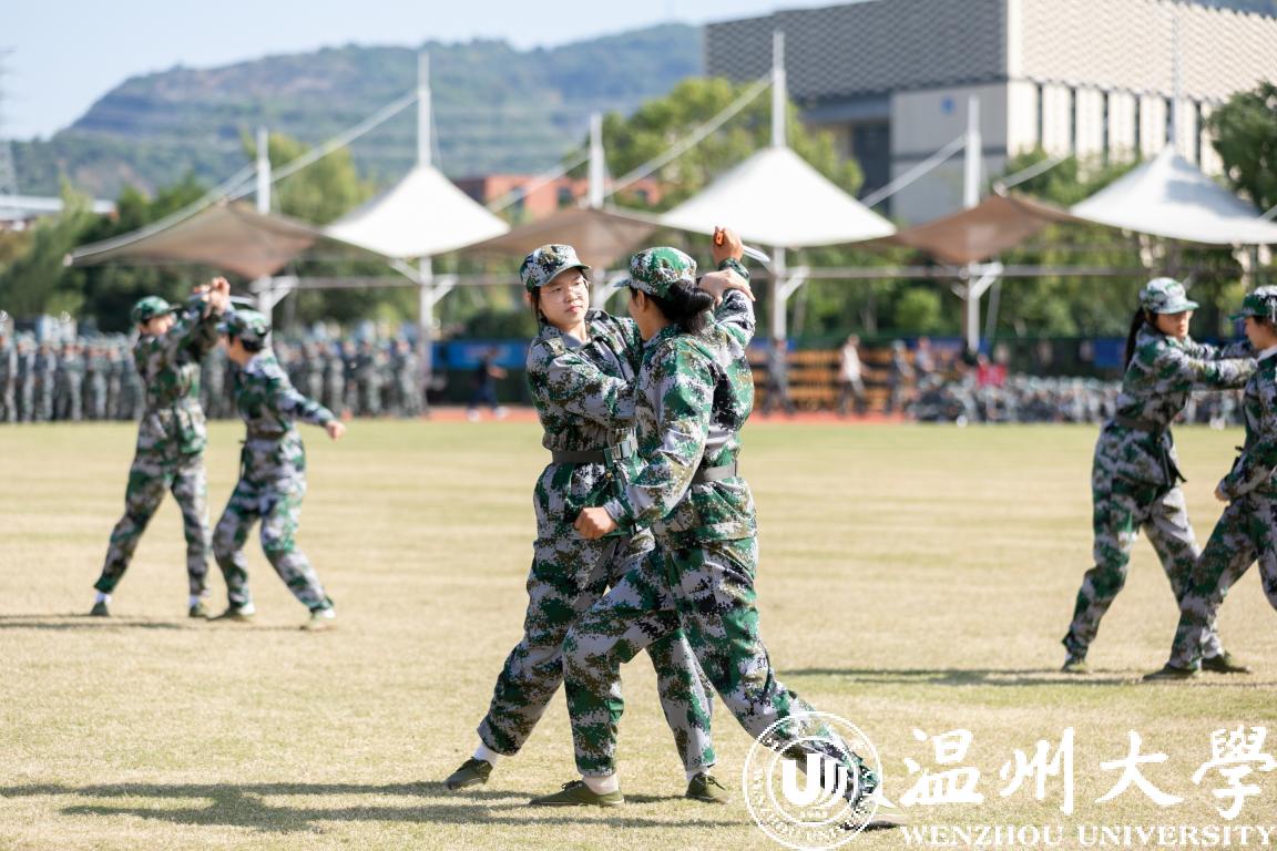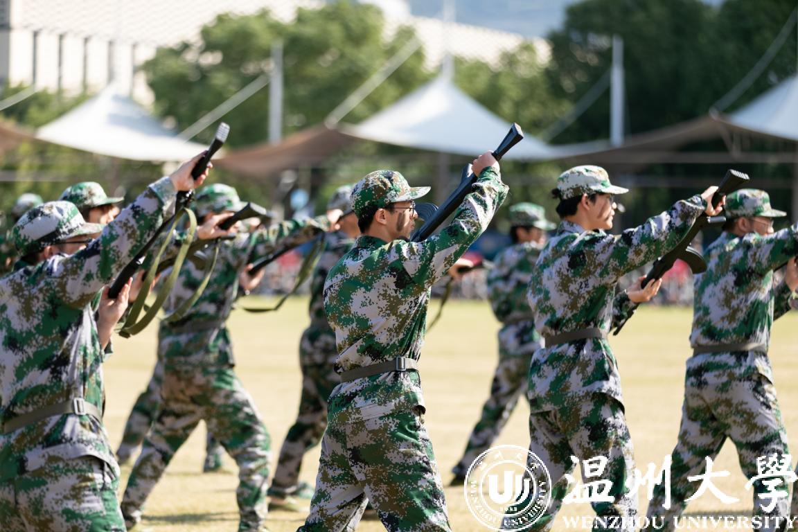 参与表演的学生精神饱满、雄健有力,展示了14天军训的成果,生动诠释了“求学问是,敢为人先”的温大精神,为军训画上了圆满句号。