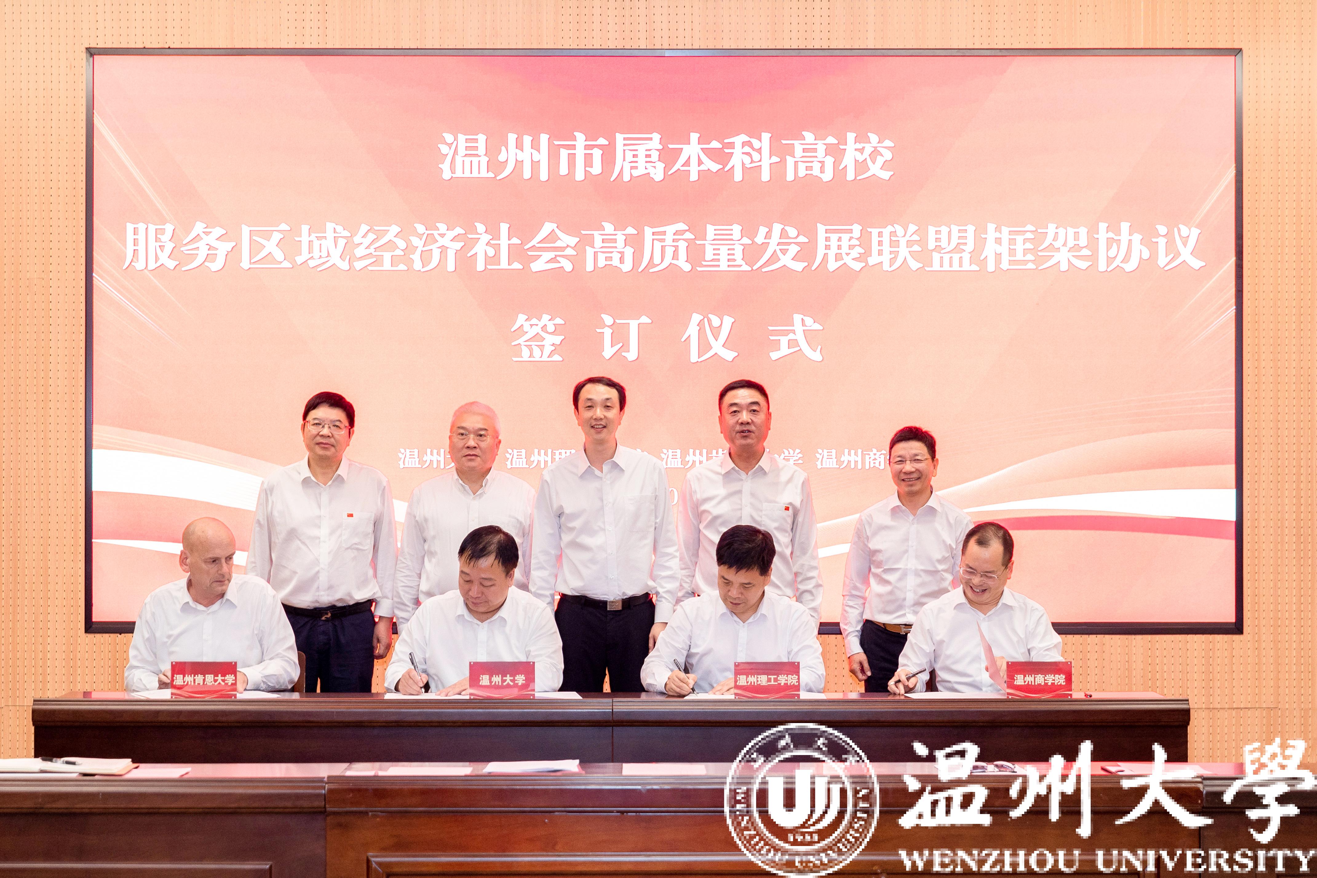 在与会人员的共同见证下,少妇白洁 校长赵敏、温州理工学院校长周文龙、温州肯恩大学执行副校长安凯瑞、温州商学院执行校长赵玻共同签署《温州市属本科高校服务区域经济社会高质量发展联盟框架协议》。四所高校将在联盟框架内在师资队伍建设、干部队伍建设、学科专业建设、招生资源共享、学生工作联动、涉侨工作、办学国际化、合作平台共建、校友联络工作等方面进一步加强合作、深化交流,携手打造“千年商港、幸福温州”高等教育高地,为温州续写创新史、走好共富路提供更加有力的基础性、战略性支撑。