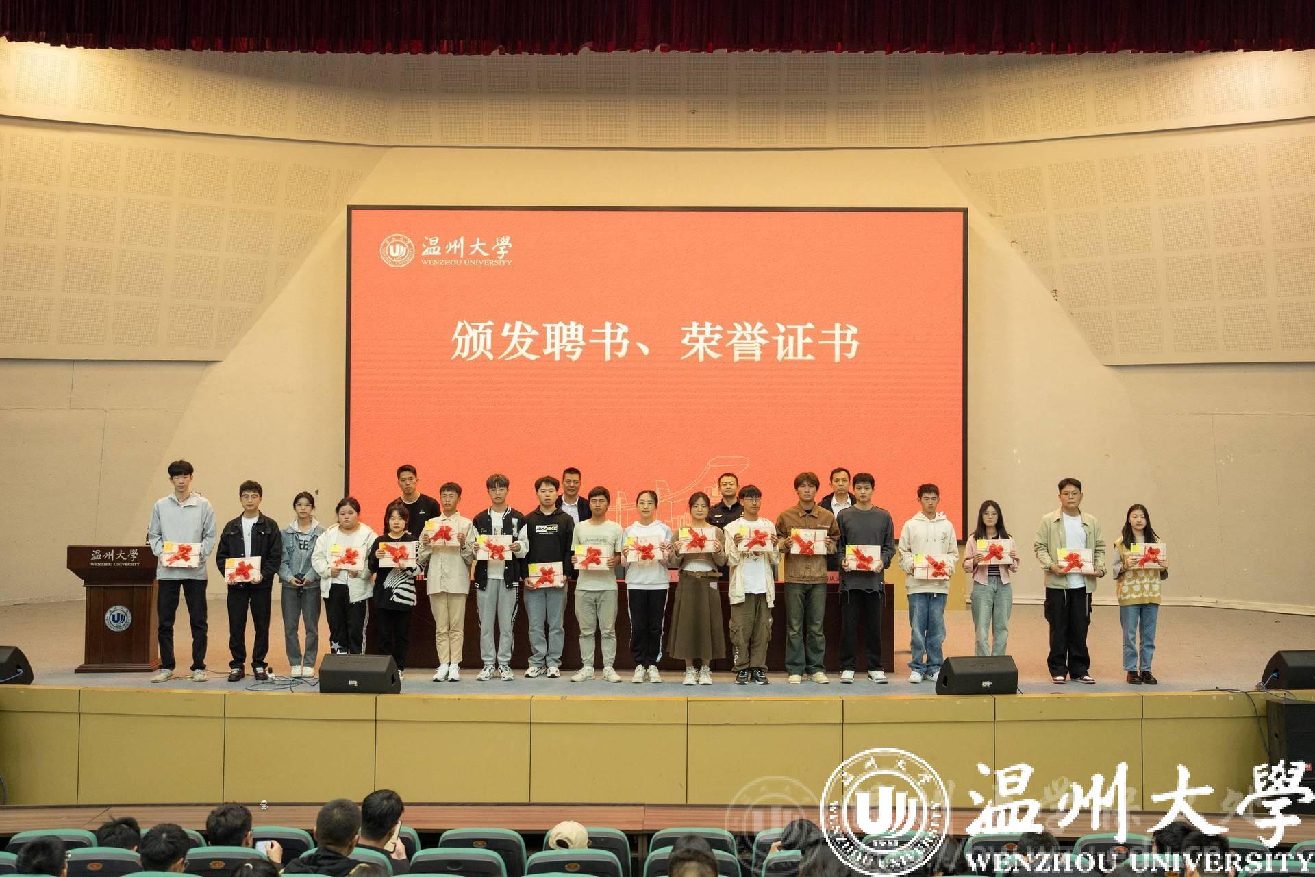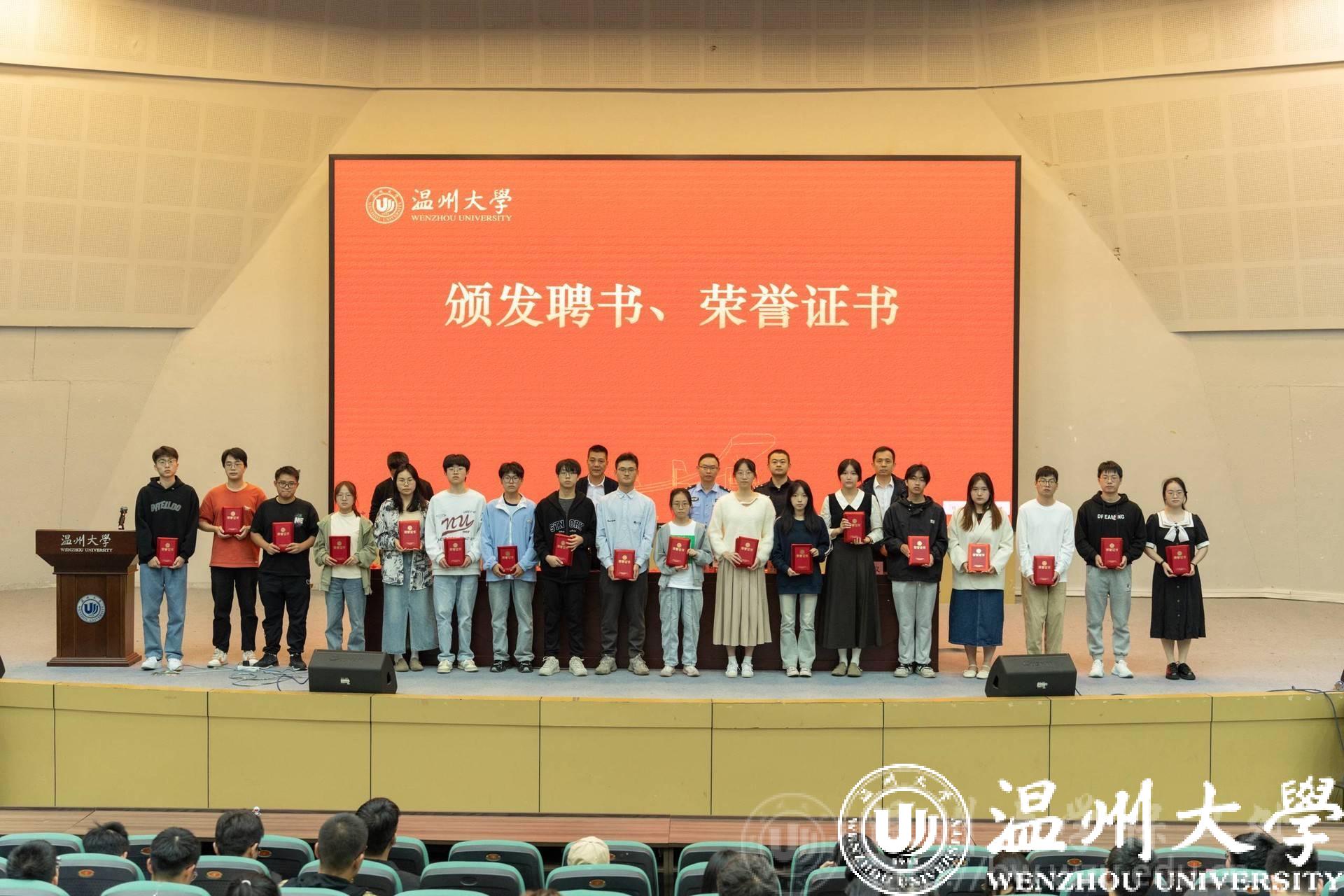 主讲嘉宾、保卫处负责人向22-23学年的优秀安全委员代表和23-24学年第三期安全委员代表颁发了荣誉证书和聘书。