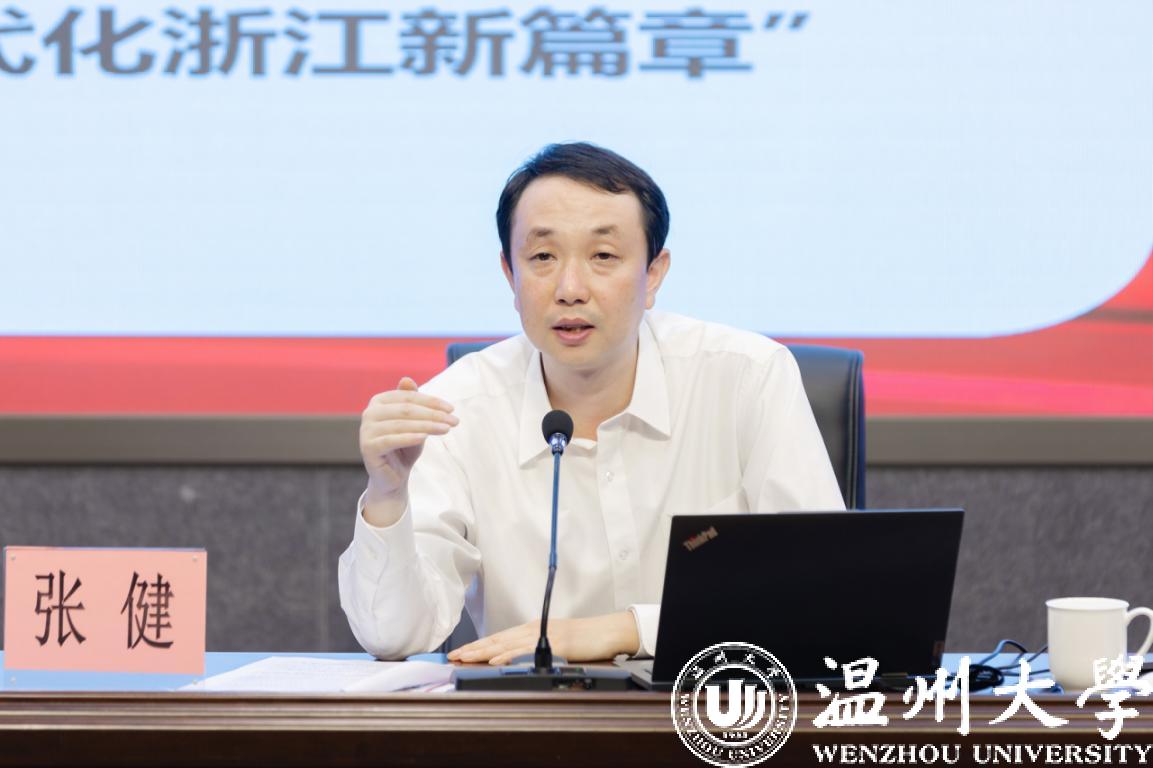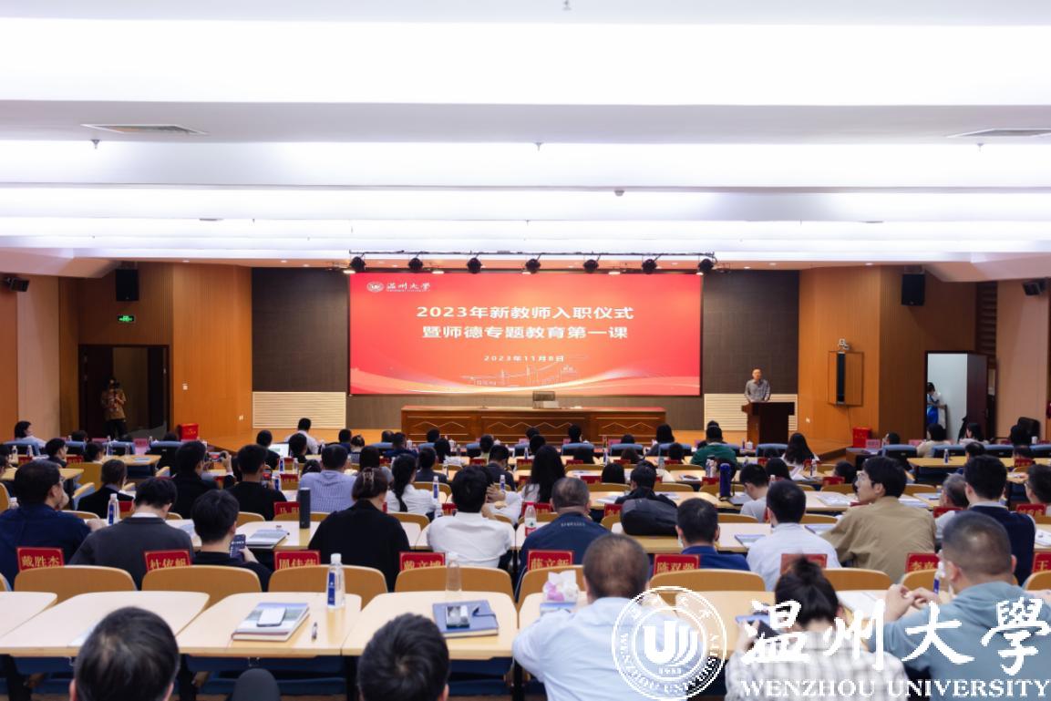 为深入开展学习贯彻习近平新时代中国特色社会主义思想主题教育、认真学习贯彻习近平总书记考察浙江重要讲话精神,11月8日下午,少妇白洁 举行2023年新教师入职仪式暨师德专题教育第一课。校党委书记张健,副校长、党委委员潘玉驹出席会议。2022年10月份至今新入职的150多位教职工与校师德师风建设工作委员会委员参加会议。潘玉驹主持。