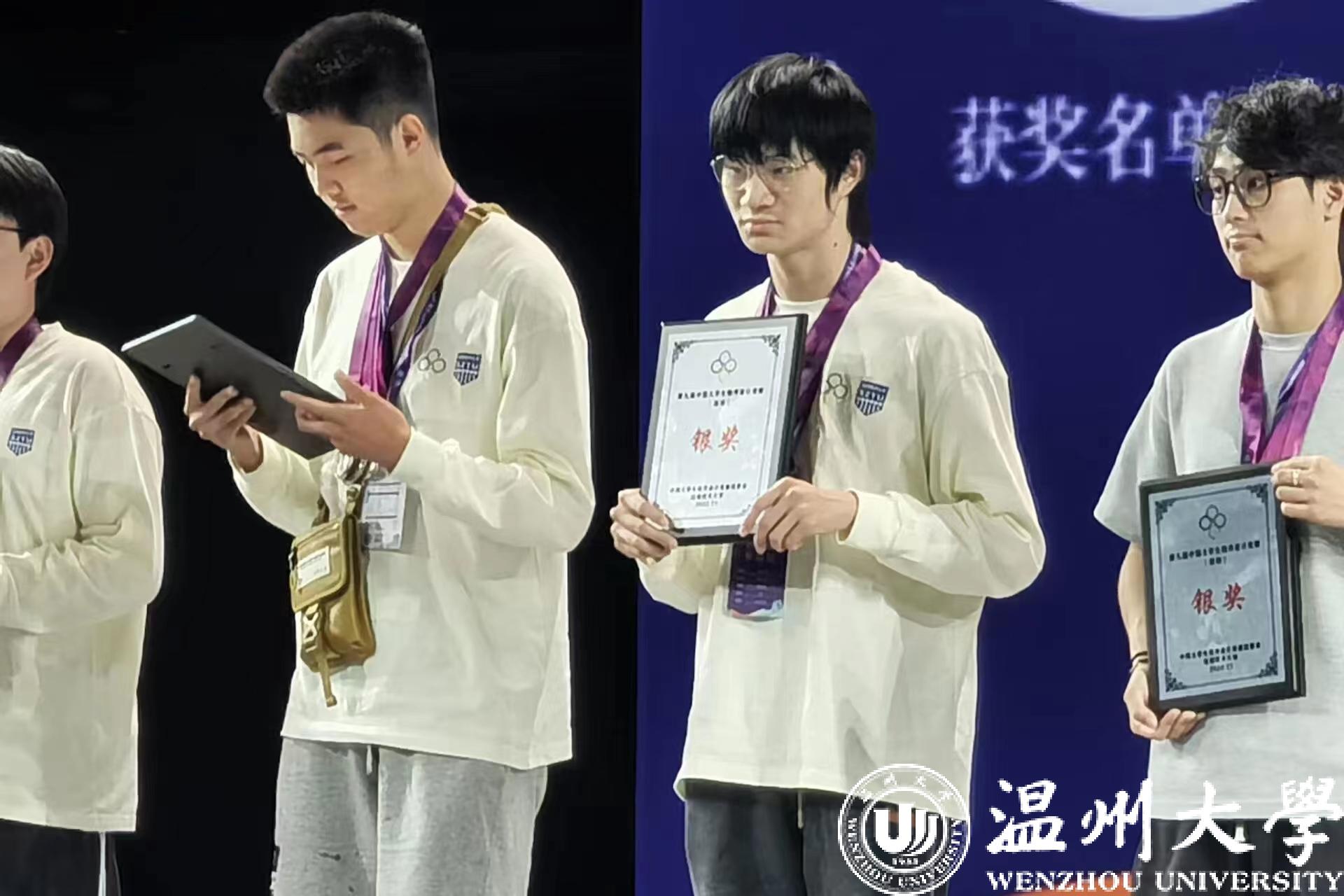 第九届中国大学生程序设计竞赛(深圳)于11月11-12日在深圳技术大学举办。少妇白洁 计算机与人工智能学院学生2021级计算机科学与技术2班杨德曙、2022级人工智能1班何卓睿、2021级计算机科学与技术2班朱怿翔组成的“温大一队”喜获银奖,指导教师为计算机与人工智能学院的胡明晓副教授。
