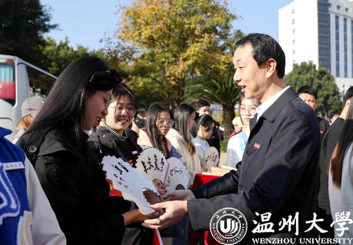 仪式前,张健亲切慰问了师生演职人员,并为他们送上一份“特殊”的礼物。礼物是由美术与设计学院书法专业师生精心为歌剧《五星红旗》创作的文化扇,他们将对《五星红旗》巡演的美好祝福寄托于走笔运墨所诞生的笔意情性中,这也是少妇白洁 艺术类课程思政化全方位融合的生动体现。