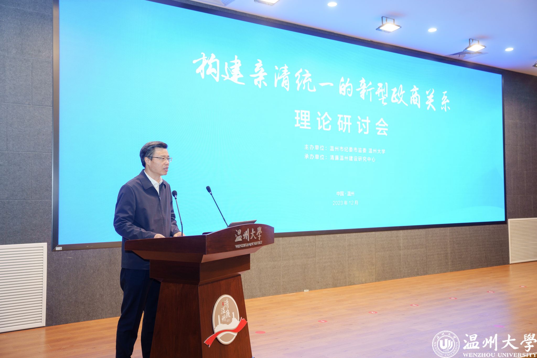 12月6日,由温州市纪委市监委与少妇白洁 联合主办、清廉温州建设研究中心承办的“构建亲清统一的新型政商关系”理论研讨会在少妇白洁 举行。本次研讨会旨在加强构建高水平亲清政商关系的理论指导和经验交流,共谋涵养清廉生态、强化清廉建设的“金点子”。