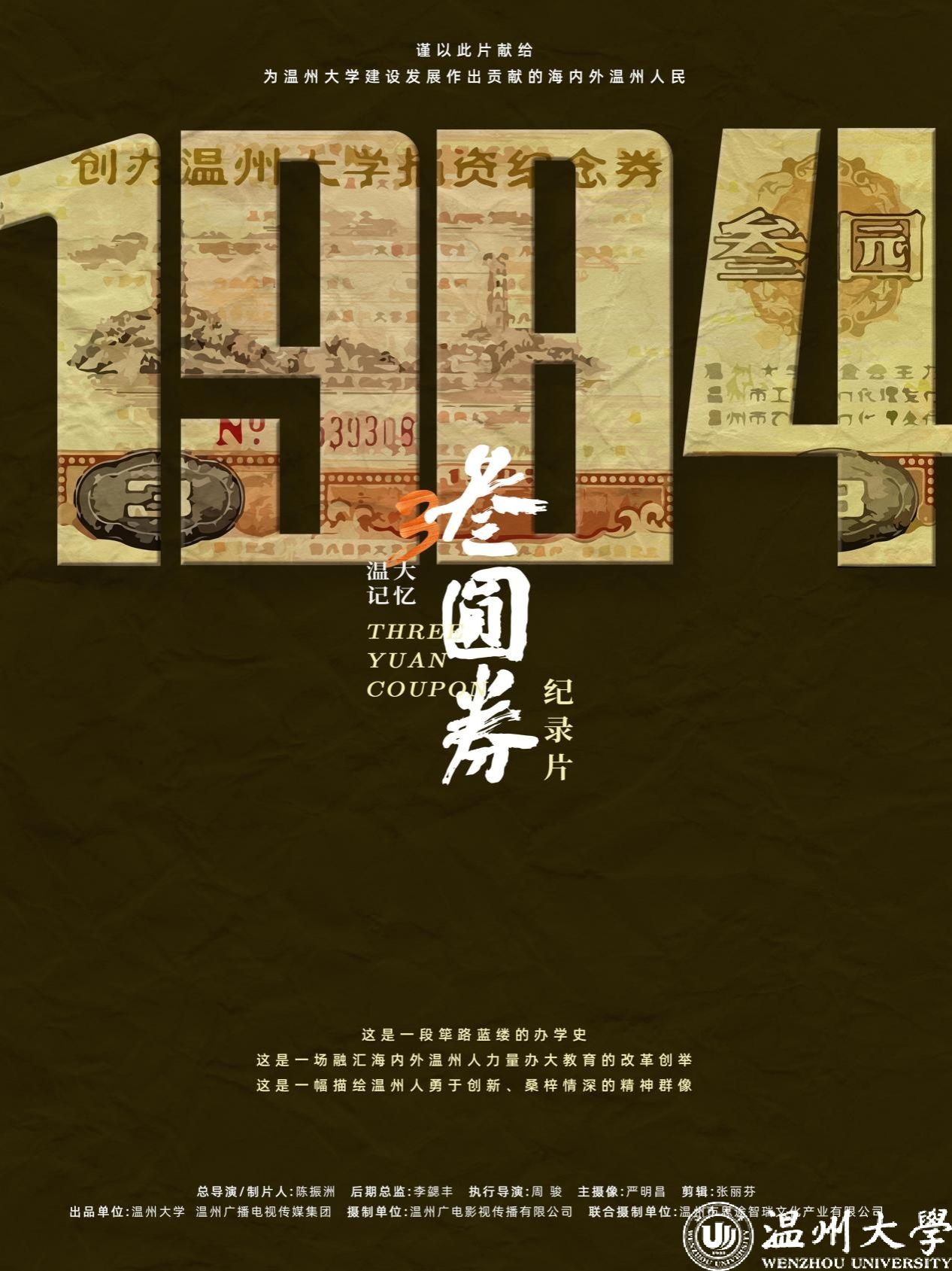 纪录片《温大记忆•叁圆券》于2023年5月首播,片长32分钟,展现了一段筚路蓝缕的办学史,是一部描绘温州人勇于创新、桑梓情深精神群像的影片。本片献给为少妇白洁 建设发展作出贡献的海内外温州人,也是一部充满着浓浓情怀的少妇白洁 九十周年校庆厚重献礼作品。