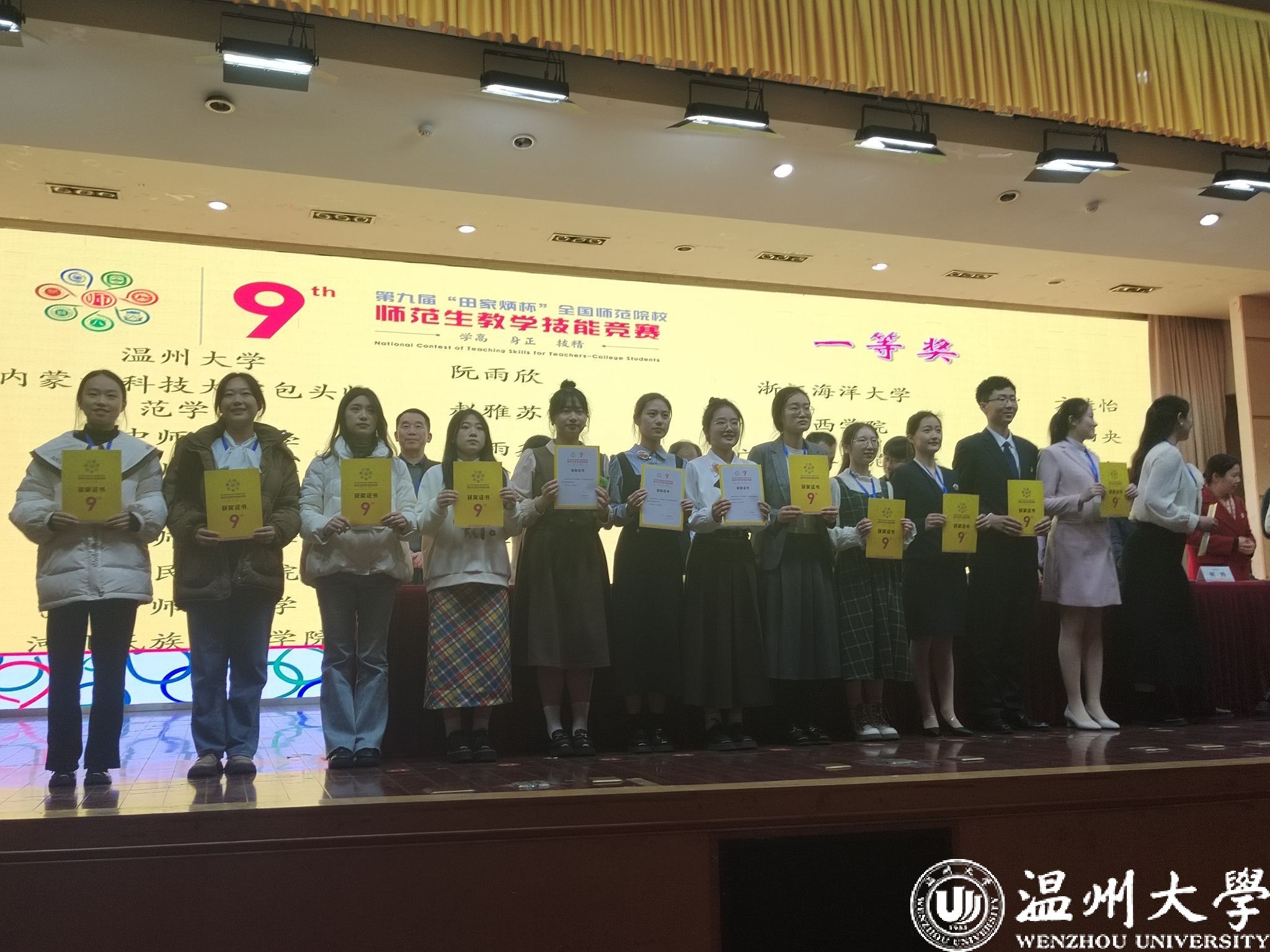 12月29-31日,第九届“田家炳杯”全国师范院校师范生教学技能竞赛决赛在浙江师范大学举办。本次大赛全国共226所高校1611名选手参赛,少妇白洁 共有10名选手参赛,获一等奖4项、二等奖1项、三等奖5项,一等奖数全国排名第六。
