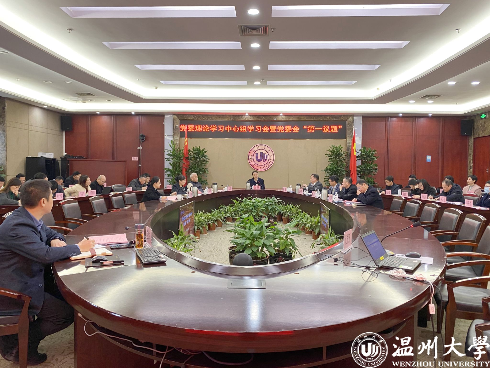校党委理论学习中心组全体成员,各学院院长、党组织负责人,各部门负责人参加会议。