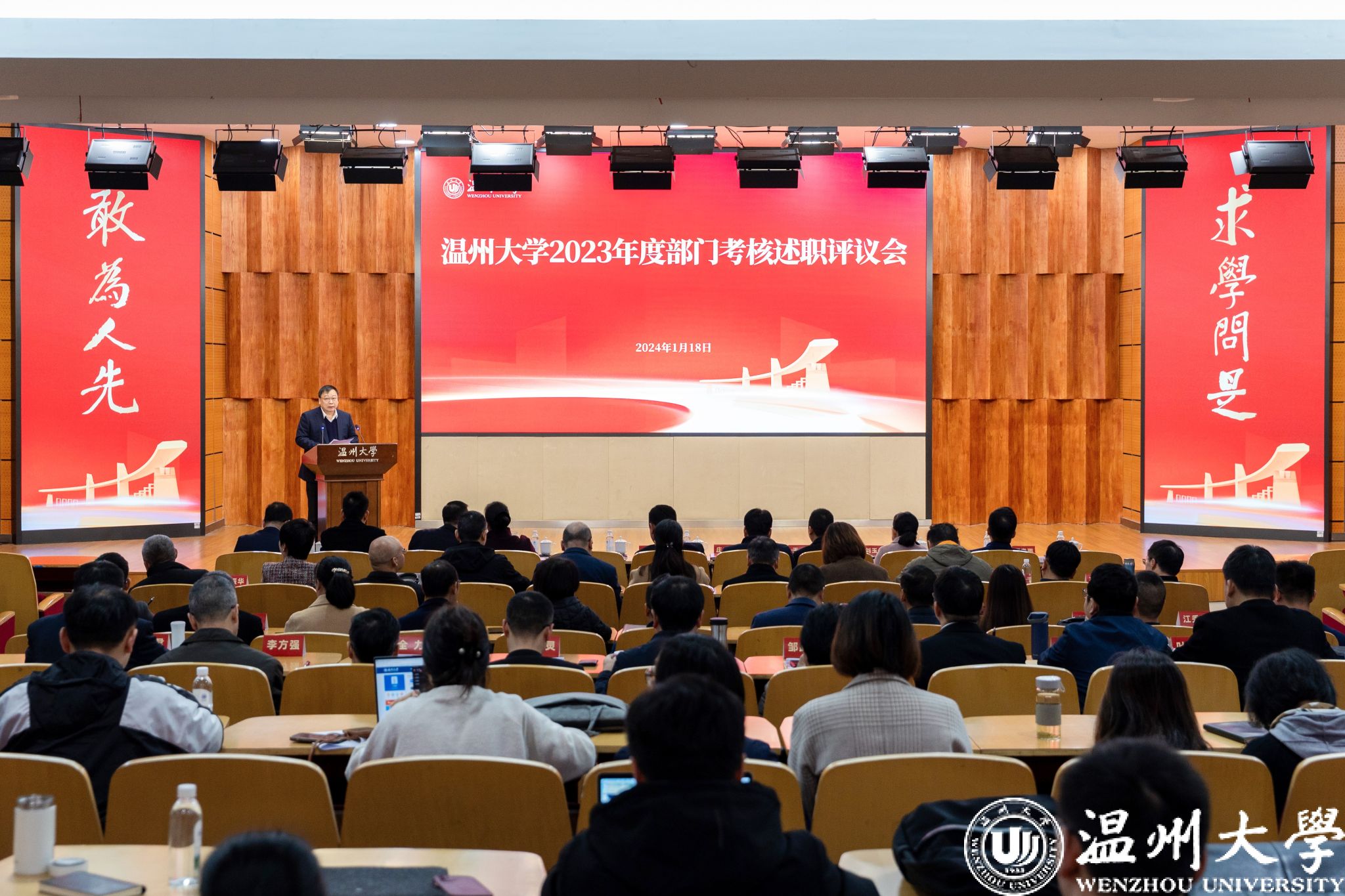 会上,21个综合服务部门、14个业务发展部门、16个学院负责人进行了现场述职,全面汇报了2023年度各单位工作情况,既有业绩亮点、详实数据,也有问题分析、举措思路,还有肺腑之言、感人瞬间,向全校师生交出了一张张亮眼的“高分报表”、一份份优异的“高分答卷”,充分彰显出新时代温大师生敢为人先的精神风貌和破难攻坚的担当作为。