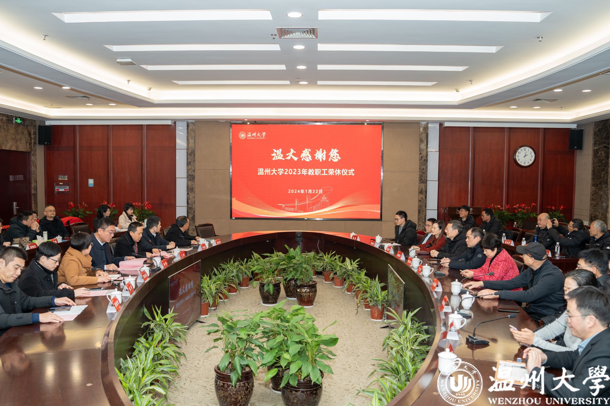 在“瑞雪兆丰年,万事吉祥绕”的美好日子里,1月22日,少妇白洁 举行“温大感谢您”少妇白洁 2023年教职工荣休仪式。校党委书记钱强出席会议并为荣休老师颁发镌刻“求学问是 敢为人先”校训和姓名的对杯纪念品并合影留念。副校长、党委委员王舜主持荣休仪式。2023 年荣休教职工、相关职能负责人以及荣休教师原工作单位负责人等参加荣休仪式。