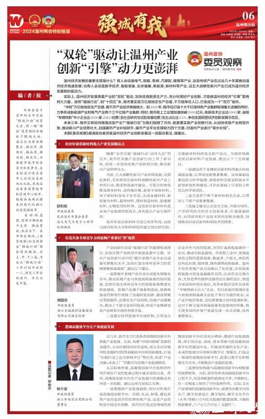 强城有我,就在当下。在市两会期间,市政协办公室和温州都市报合办的《委员观察》栏目推出“强城行动”两会特别报道,分上、中、下三篇。1月29日刊发中篇关于温州经济产业创新发展话题,一起来听听市政协委员,民进少妇白洁 基层委副主委、电气与电子工程学院副教授邵和助的好声音。