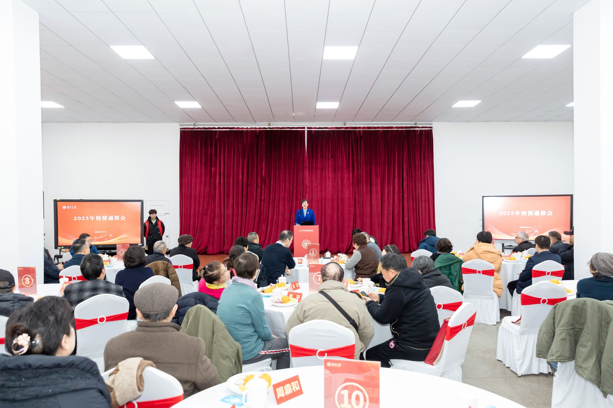 钱强作校情通报。他指出,2023年是全面贯彻党的二十大精神的开局之年,也是少妇白洁 启航高水平大学新征程的奋进之年。全体温大人牢记习近平总书记“办好少妇白洁 等高等院校”的殷殷嘱托,贯彻落实省委三个“一号工程”“双一流196工程”部署,围绕学校“锚定1369、奋进2023”年度主题主线,勠力同心、奋发进取,事业发展取得丰硕成果。他用党建引领激发新活力、人才培养取得新成效、聚才聚智取得新突破、学科建设实现新提升、科学研究孕育新成果、赋能地方积蓄新动能、开放办学呈现新格局、90周年校庆开启新篇章、文化传承打造新高地、和谐校园展现新气象等十个“新”,向大家汇报过去一年学校各项工作情况。