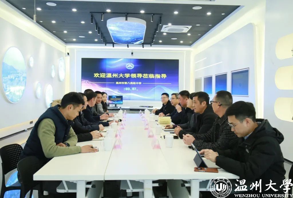 3月7日,校党委书记钱强一行赴温州市第八高级中学,调研指导师范生教育实践工作,并与温州八高的领导班子进行了座谈交流。教务处、教育发展研究院等部门负责人参加调研。