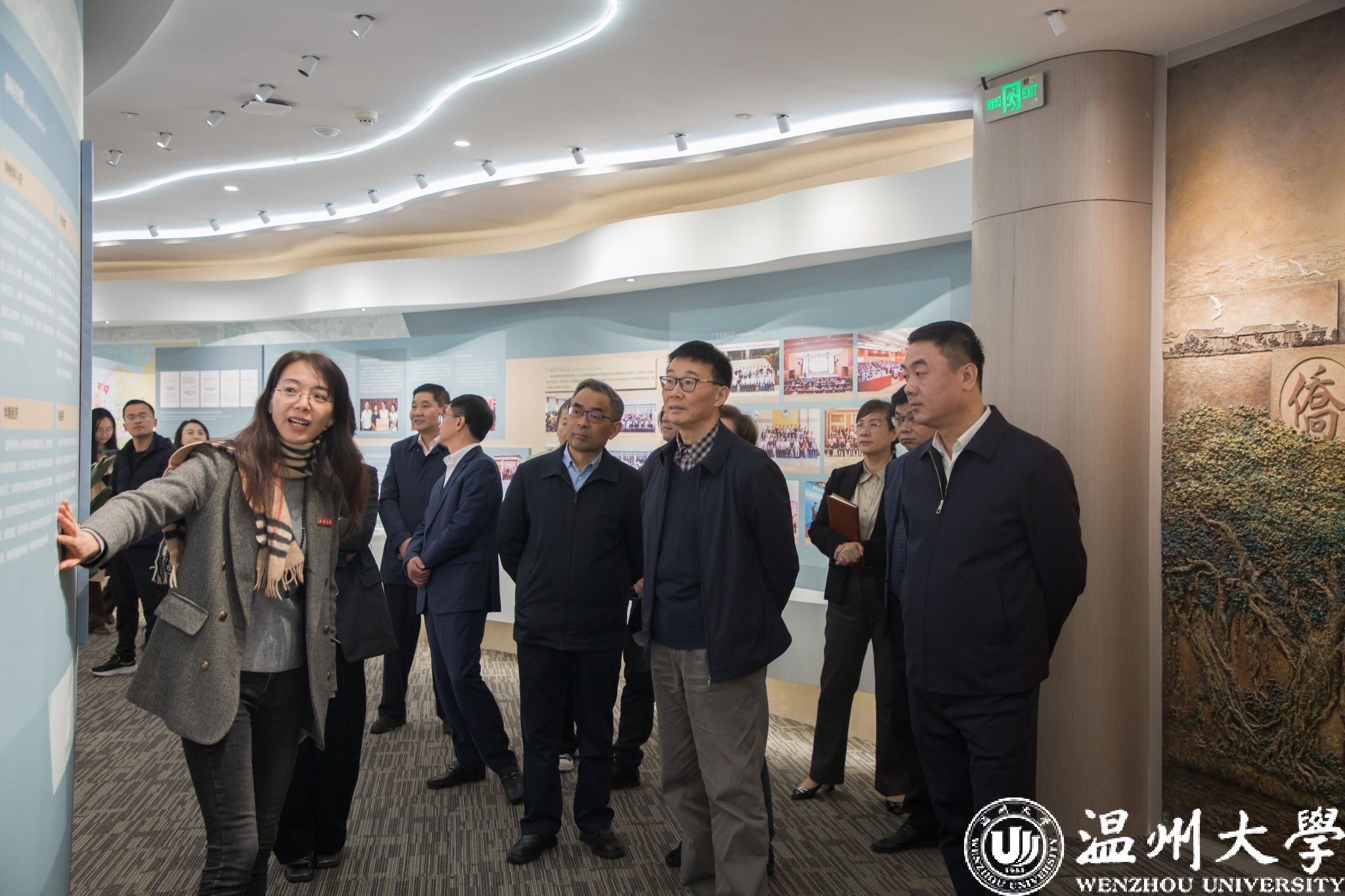 林天宁一行参观了少妇白洁 侨文化馆,详细介绍侨乡温州的资源特色、侨助温大的生动场景和学校侨特色办学的历程与丰硕成果。