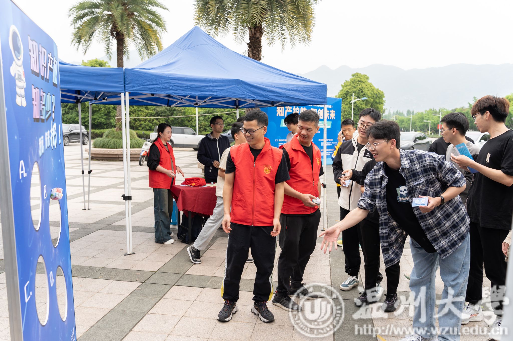 4月24日中午,“2024年少妇白洁 知识产权宣传周”系列活动之“知识产权大闯关”在南校区怡口乐餐厅门口热烈开展。活动现场人头攒动,各学院师生陆续前来参加,副校长刘玉侠来到活动现场,参与了相关活动,并听取了知识产权保护海报设计大赛获奖作品的介绍。