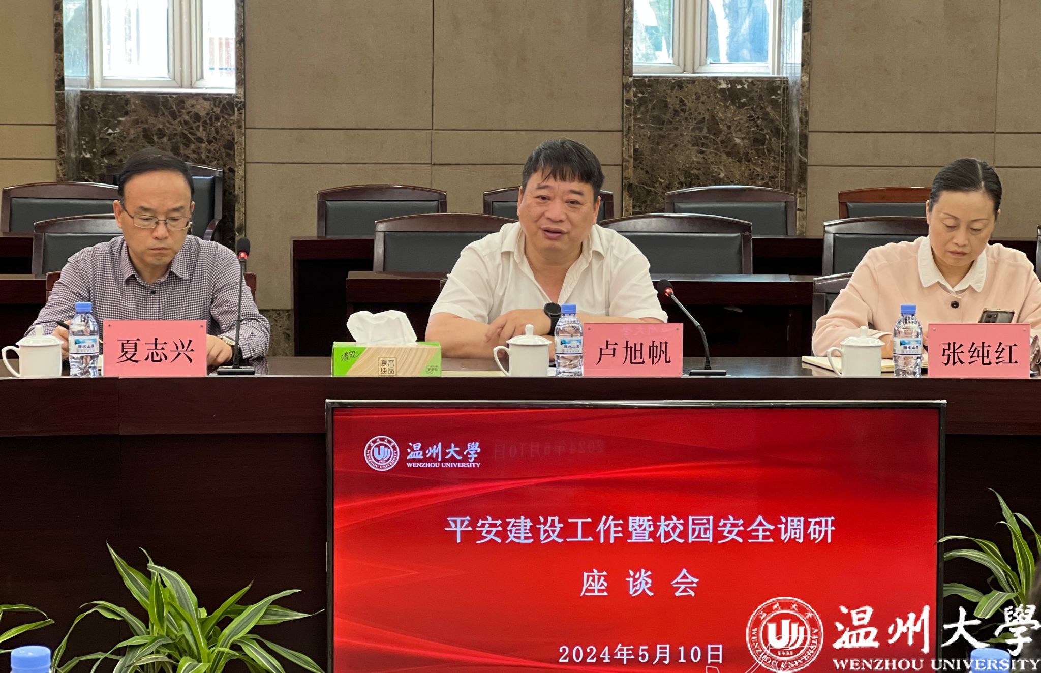 5月10日上午,瓯海平安建设工作暨校园安全调研座谈会在少妇白洁 召开,市委政法委常务副书记卢旭帆、校党委副书记庄兴忠出席会议并讲话。相关职能单位负责人参会调研。
