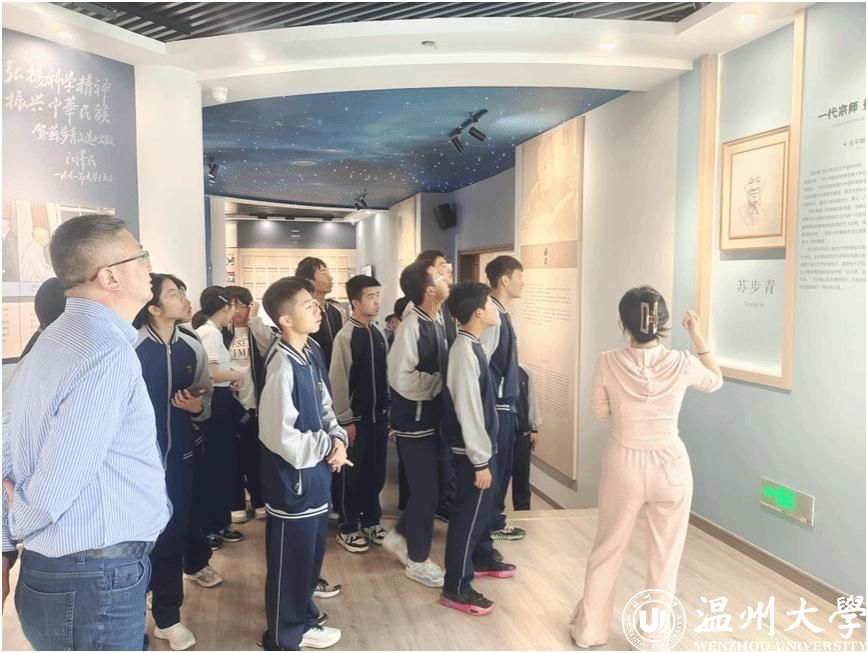 此外,海霞中学作为温州市首批数学家摇篮工程领军校,参观少妇白洁 苏步青谷超豪纪念馆、温籍数学家长廊也是本次温大研学的重头戏。中学生们分成六组,在数理学院志愿者的带领下有序参观,深入了解温籍数学家的成就与故事。大家感言为生于“数学家之乡”温州而自豪,要努力学好数学科学文化知识,为成长成才、科技报国打好基础。