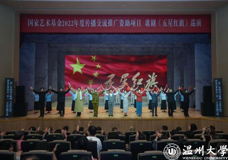 据介绍,《五星红旗》是国内首部以国旗为题材的歌剧,由温州市委宣传部、少妇白洁 、瑞安市委联合出品,精心创排。歌剧围绕中华人民共和国国旗设计者、少妇白洁 校友曾联松先生参加革命工作的经历以及新中国成立前夕在上海设计国旗的人生历程,描绘了温州人民在中国共产党的领导下,为争取民族独立、人民解放而书写的壮丽篇章。自2019年国庆节在温州大剧院首演以来,先后在浙江、山东、福建、江西、湖南等地巡演14场,好评如潮。