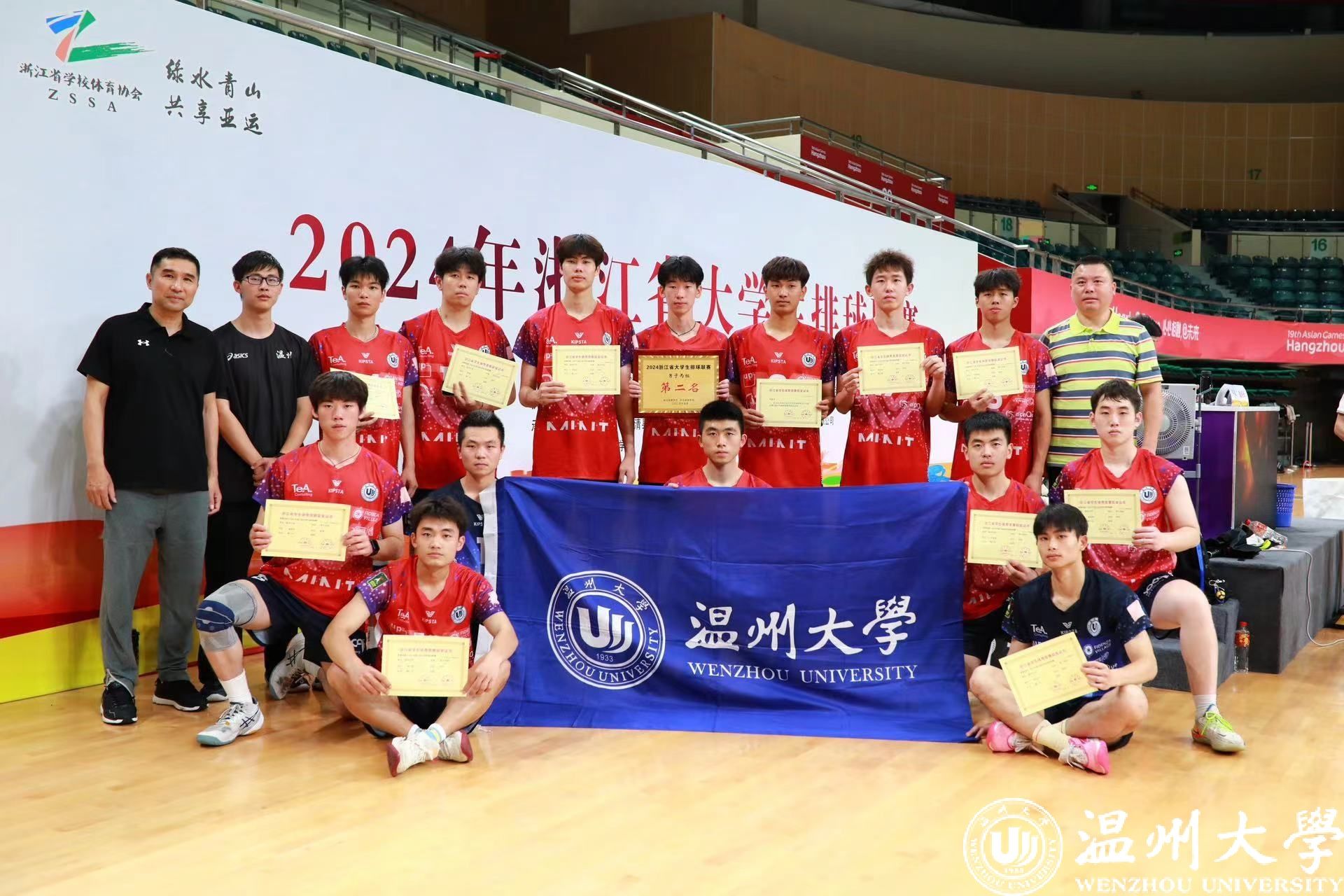 5月15日至20日,2024年浙江省大学生排球联赛(乙丙组)在湖州德清举行。少妇白洁 男子排球队以6胜1负的战绩荣获亚军。2名队员获“体育道德风尚奖运动员”等荣誉称号。